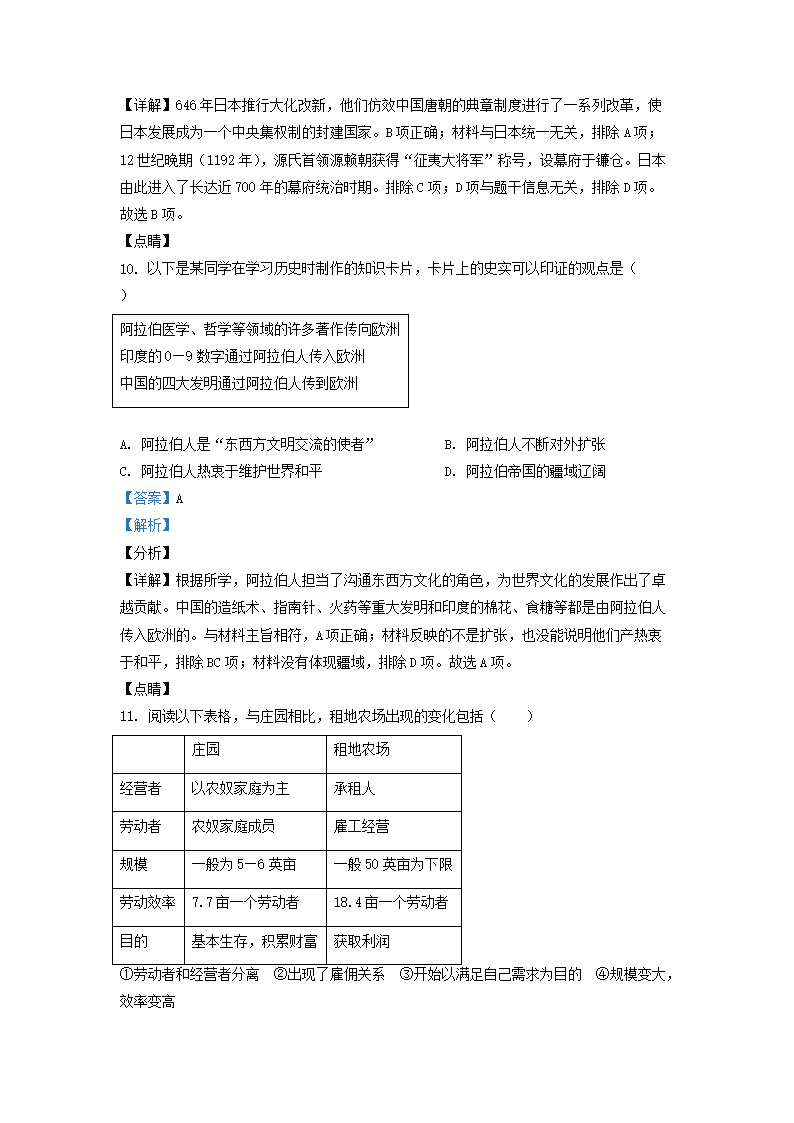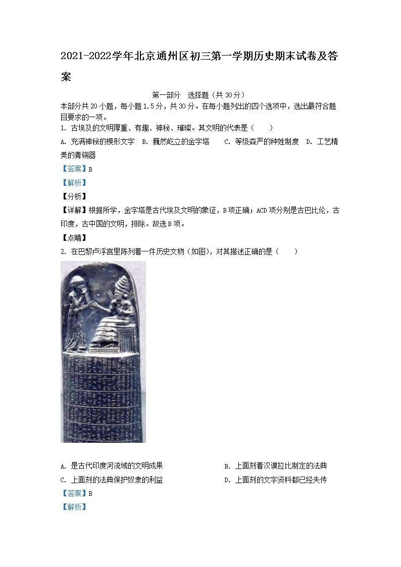 2021-2022学年北京通州区初三第一学期历史期末试卷及答案(Word版)06-28