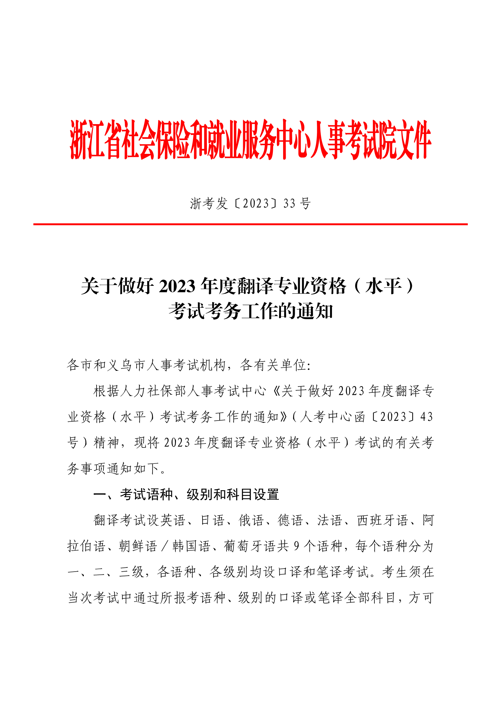 2023年浙江翻译专业资格水平考试考务工作的通知[9月1日起报考]08-24