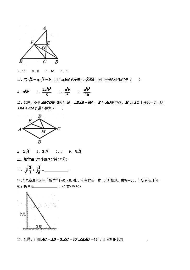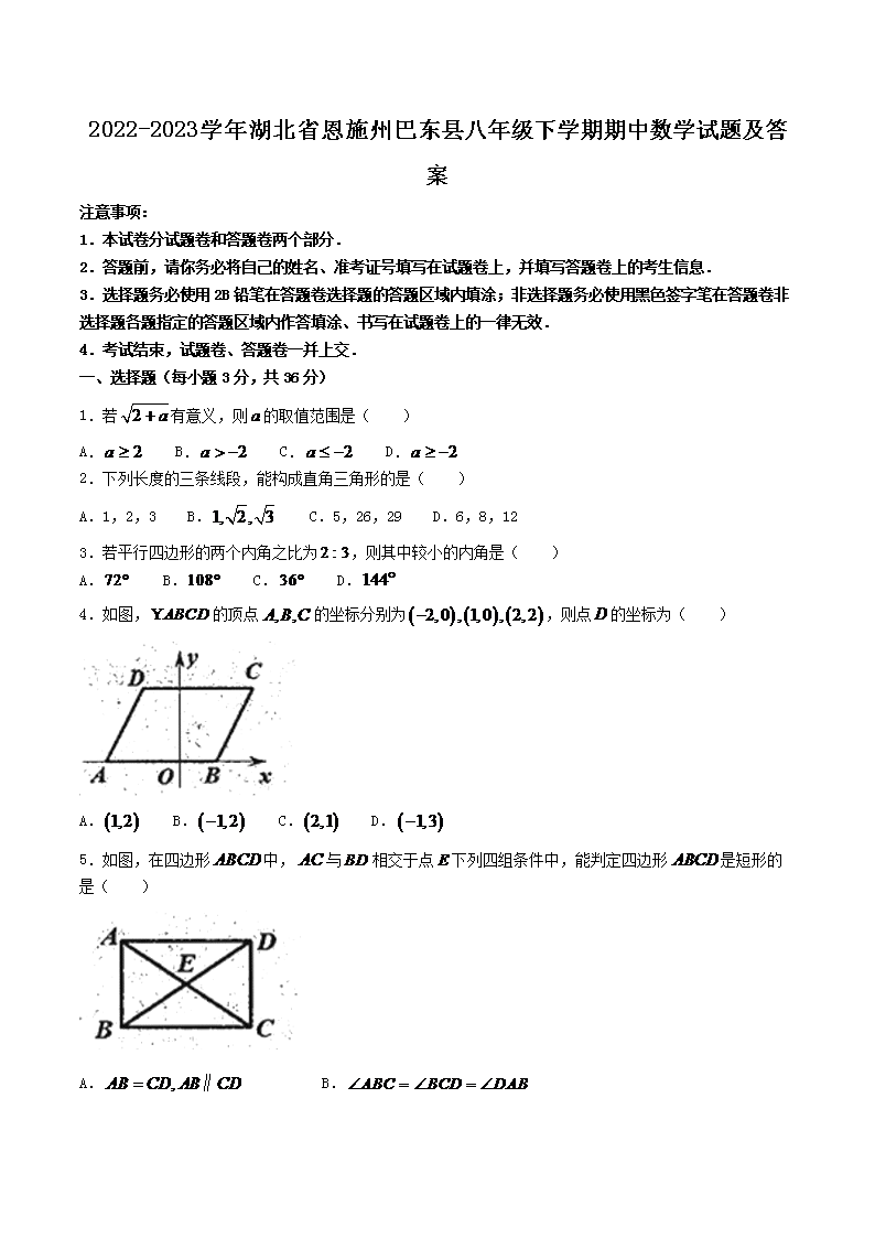2022-2023学年湖北省恩施州巴东县八年级下学期期中数学试题及答案(Word版)10-12