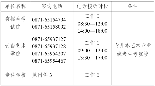 3.云南省2023年普通高校专升本考试成绩公布期间专科学校联系方式