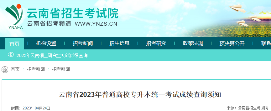原文标题:云南省2023年普通高校专升本统一考试成绩查询须知