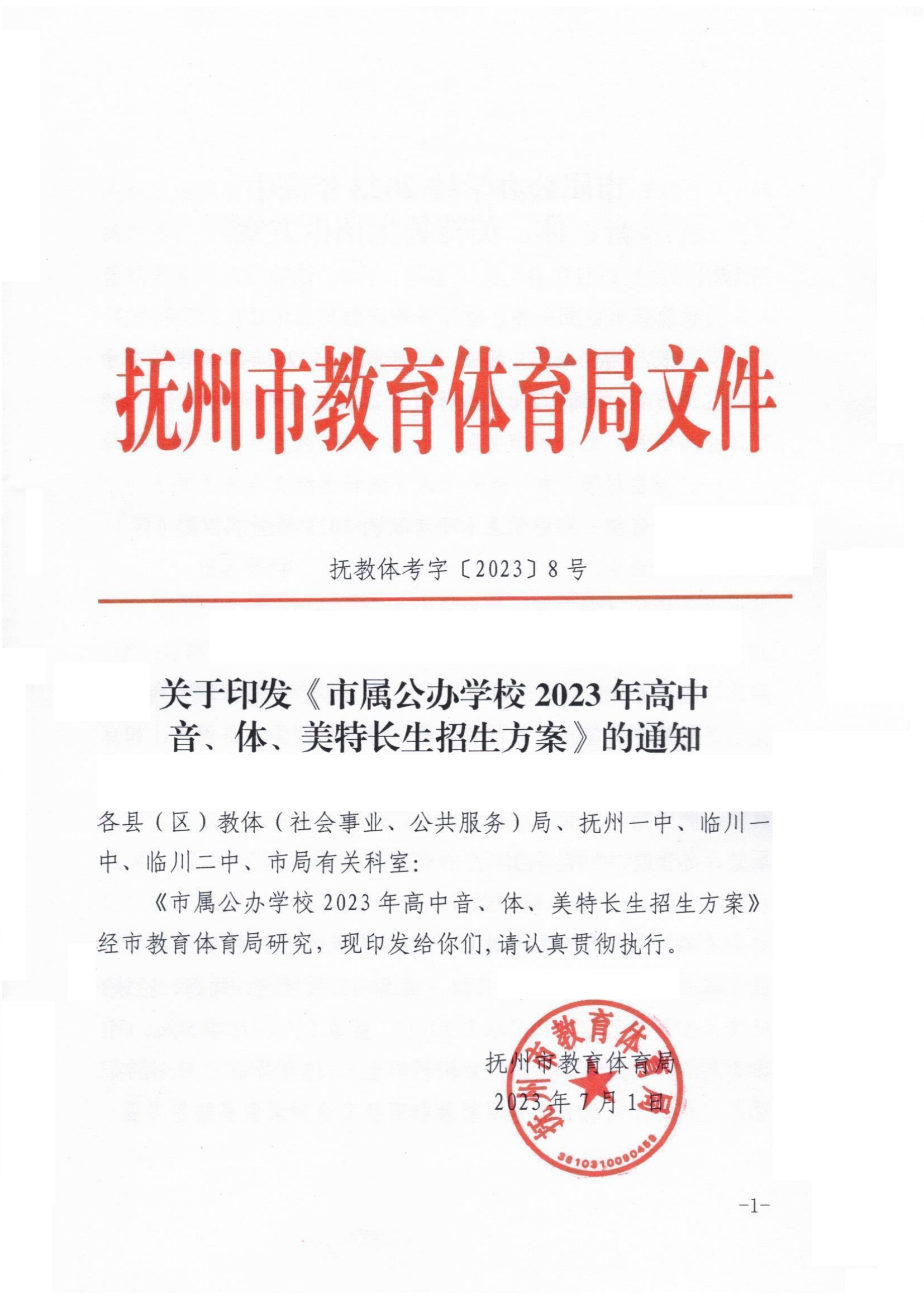 江西梧州市属公办学校2023年高中音、体、美特长生招生方案的通知07-14