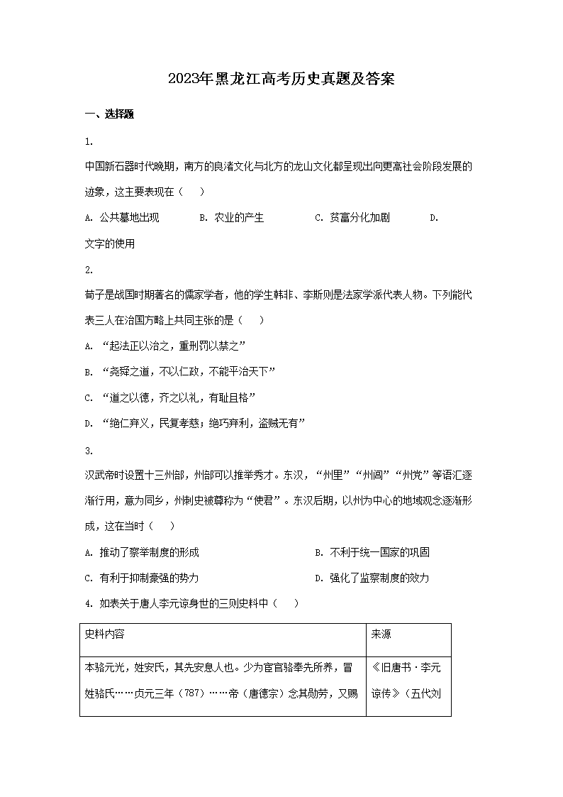 2023年黑龙江高考历史真题及答案(Word版)06-13