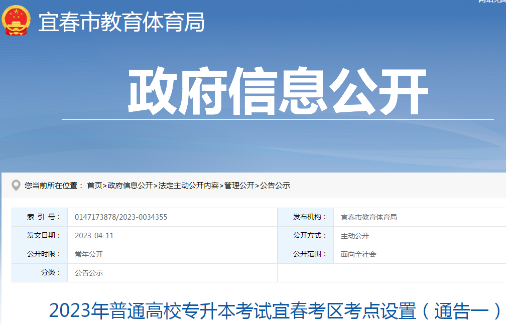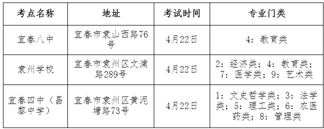 将于4月22日进行的2023年普通高校专升本考试宜春考区考点已经确定,现予以公布。