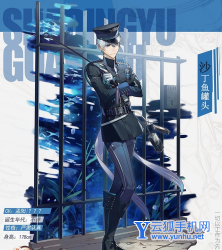 沙丁鱼罐头是位SR飨灵,性格认真严肃,尽忠职守,责任心极强,是位遵守规则到甚至有点不近人情的狱警。