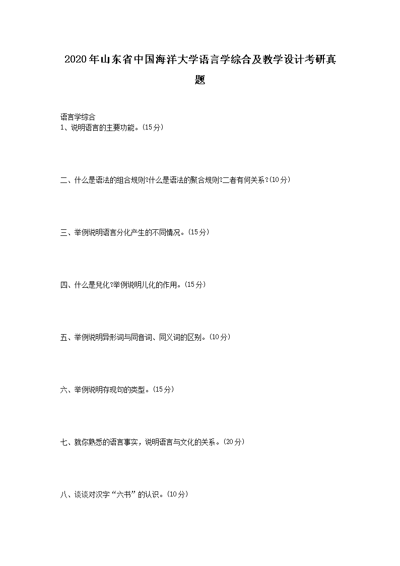 2020年山东省中国海洋大学语言学综合及教学设计考研真题(Word版)10-12
