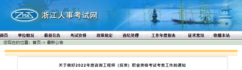 2022年浙江咨询工程师考试报名时间:2022年3月2日至10日,报名工作采用网上报名的方式,报名网站“中国人事考试网(www.cpta.com.cn)”。