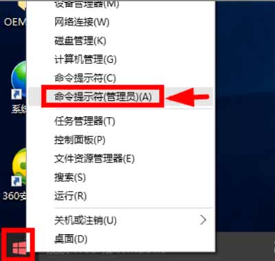 3、现在在开始菜单上点击右键,然后选择命令提示符以管理员身份运行。