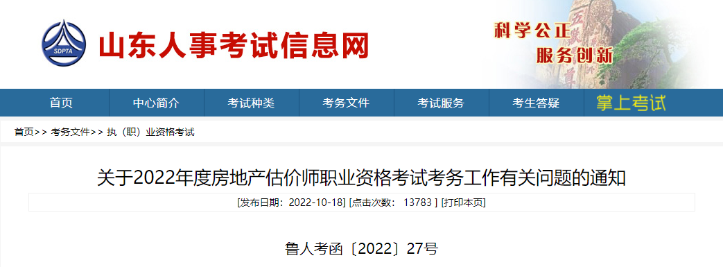 2022年山东房地产估价师执业资格考试报名工作通知10-21