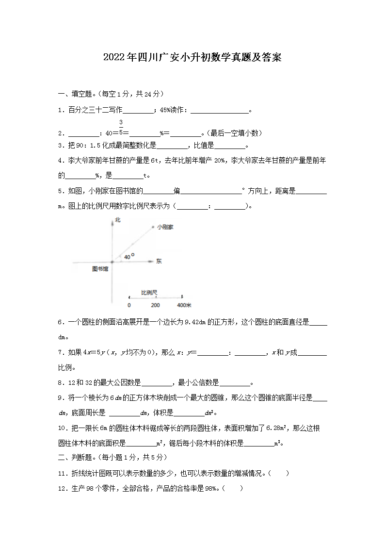 2022年四川广安小升初数学真题及答案(Word版)09-01