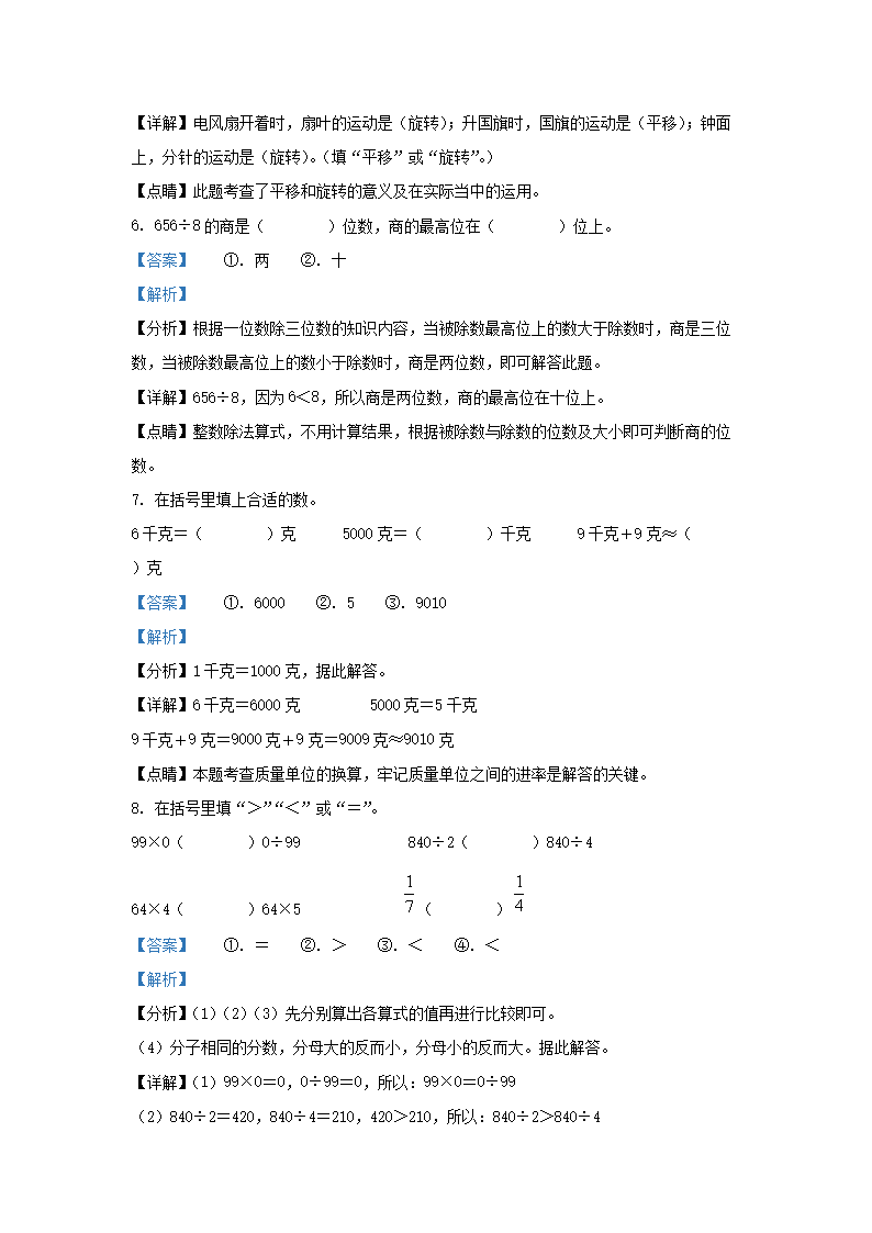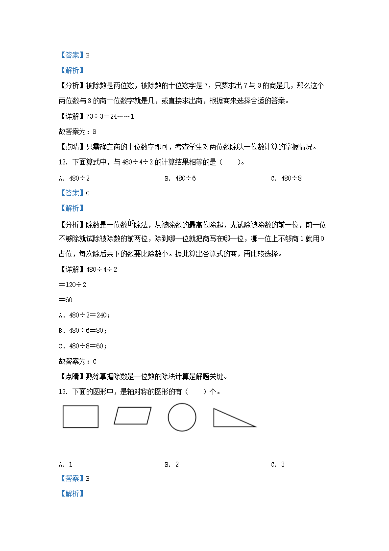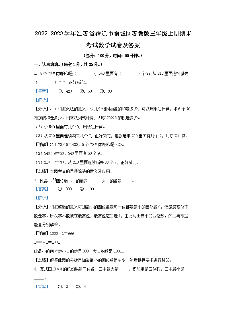 2022-2023学年江苏省宿迁市宿城区苏教版三年级上册期末考试数学试卷及答案(Word版)07-28