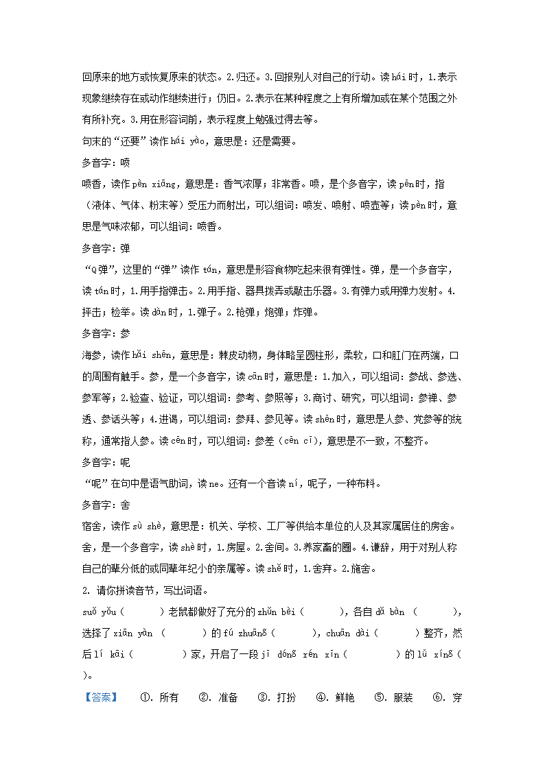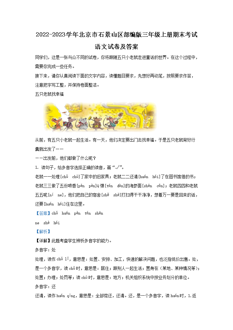 2022-2023学年北京市石景山区部编版三年级上册期末考试语文试卷及答案(Word版)06-29