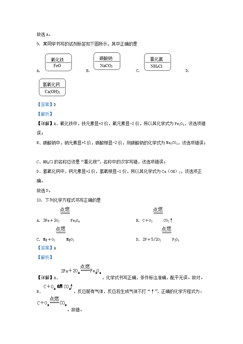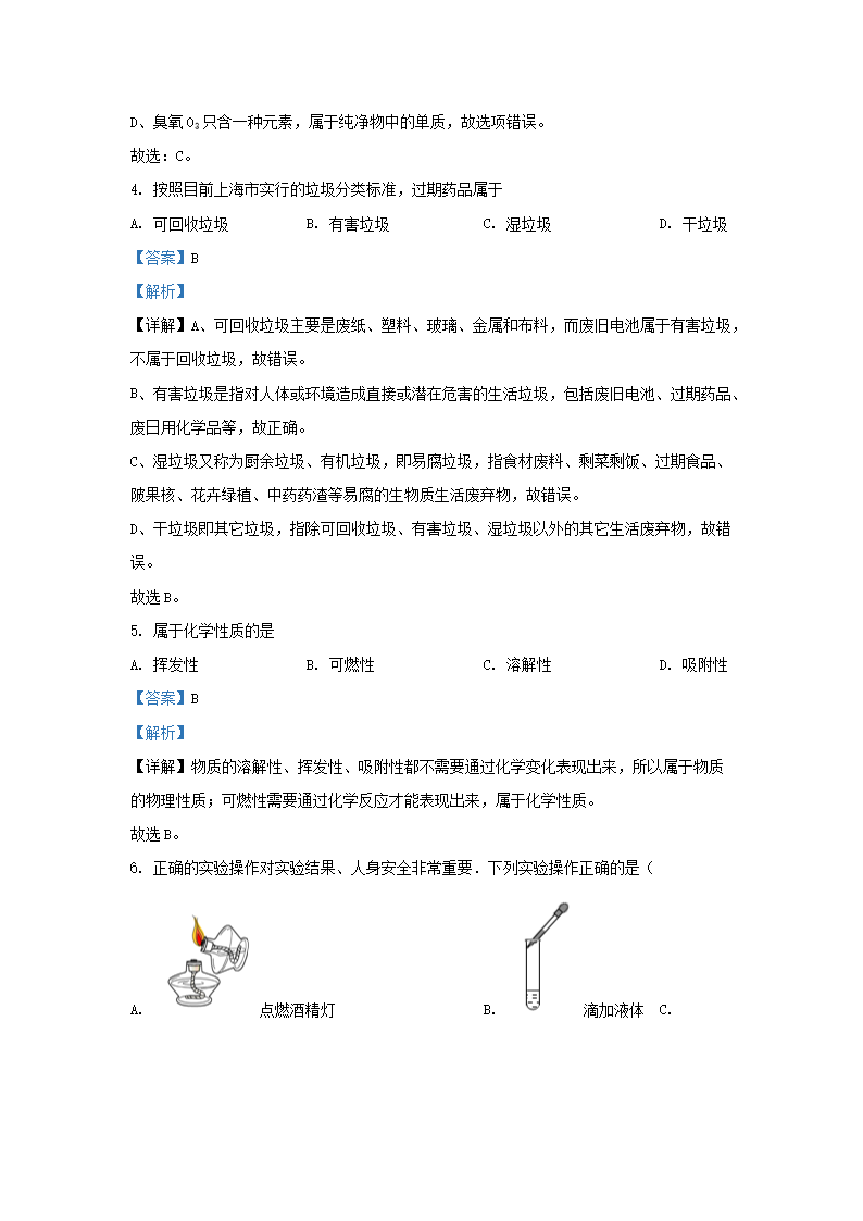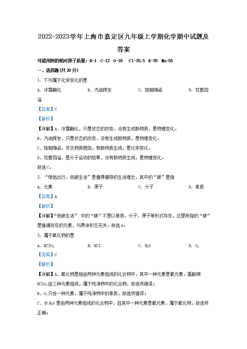 2022-2023学年上海市嘉定区九年级上学期化学期中试题及答案(Word版)10-20