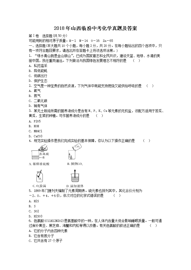 2018年山西临汾中考化学真题及答案(Word版)05-29