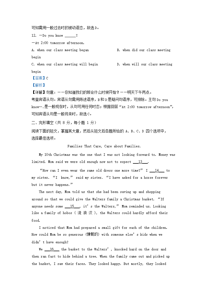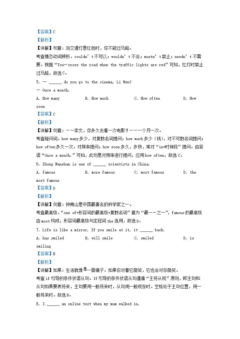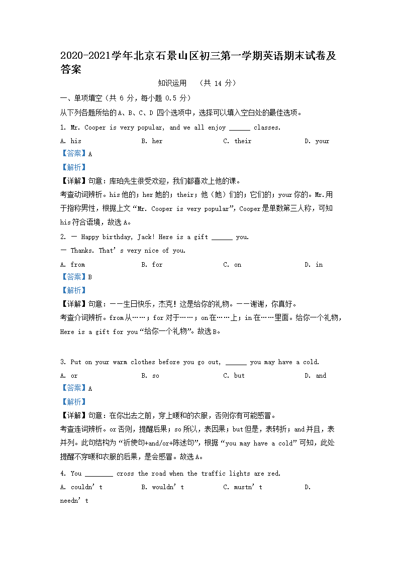 2020-2021学年北京石景山区初三第一学期英语期末试卷及答案(Word版)08-10