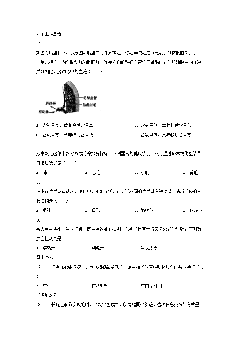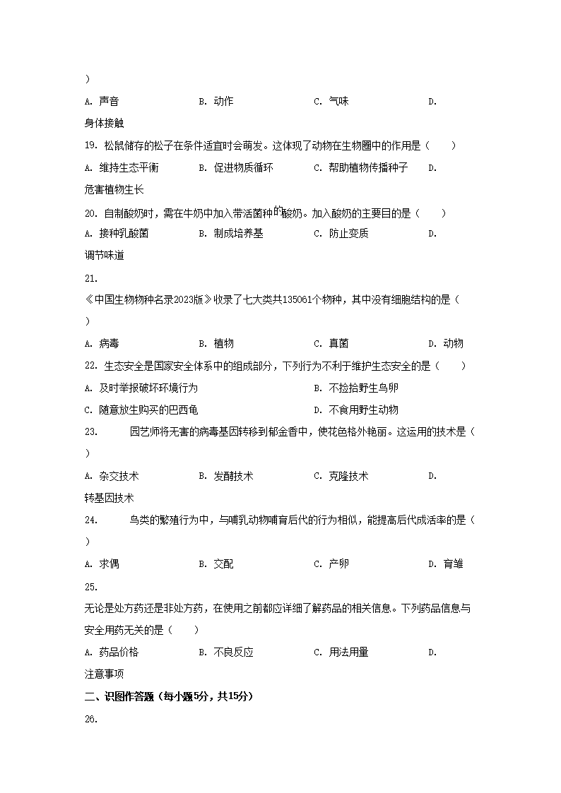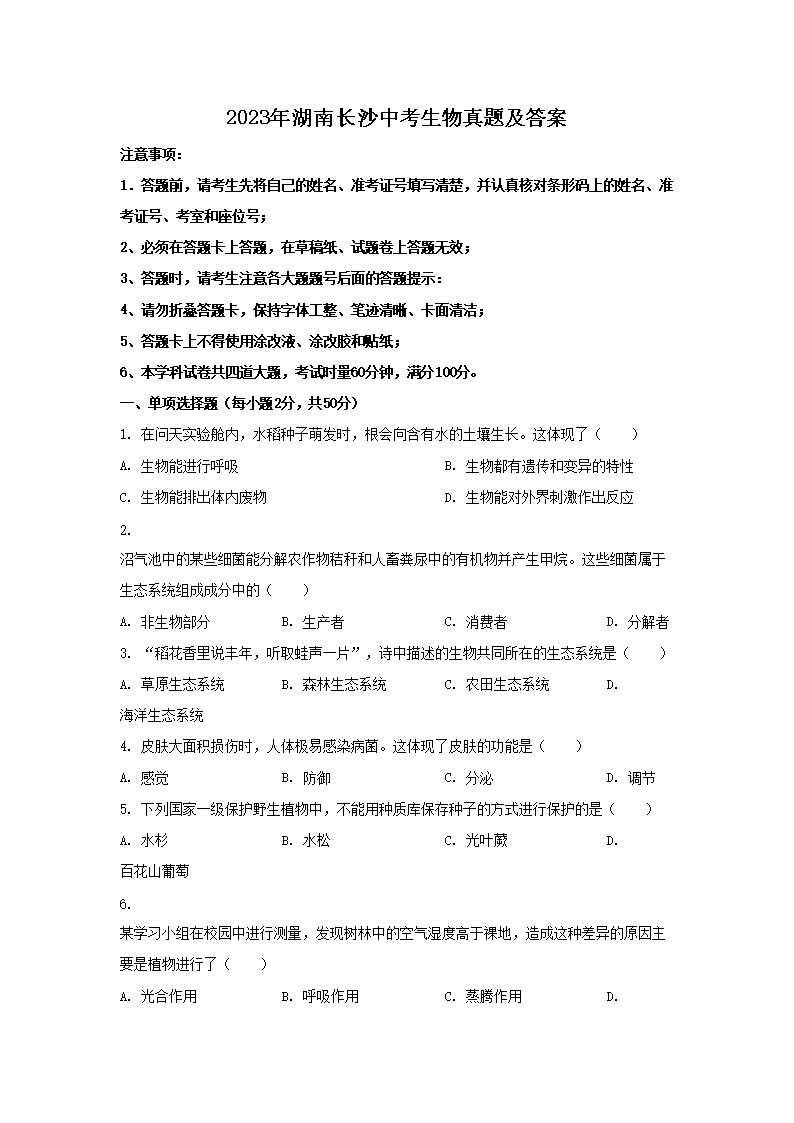2023年湖南长沙中考生物真题及答案(Word版)08-25