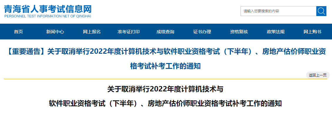 原文标题:关于取消举行2022年度计算机技术与软件职业资格考试(下半年)、房地产估价师职业资格考试补考工作的通知