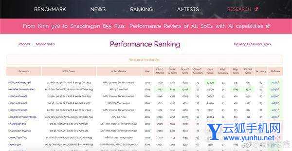 在此前公布的AI Benchmark跑分成绩中,麒麟985得到了50926分,排名全球第三,仅次于自家麒麟990 5G、联发科天玑1000,领先骁龙全系。