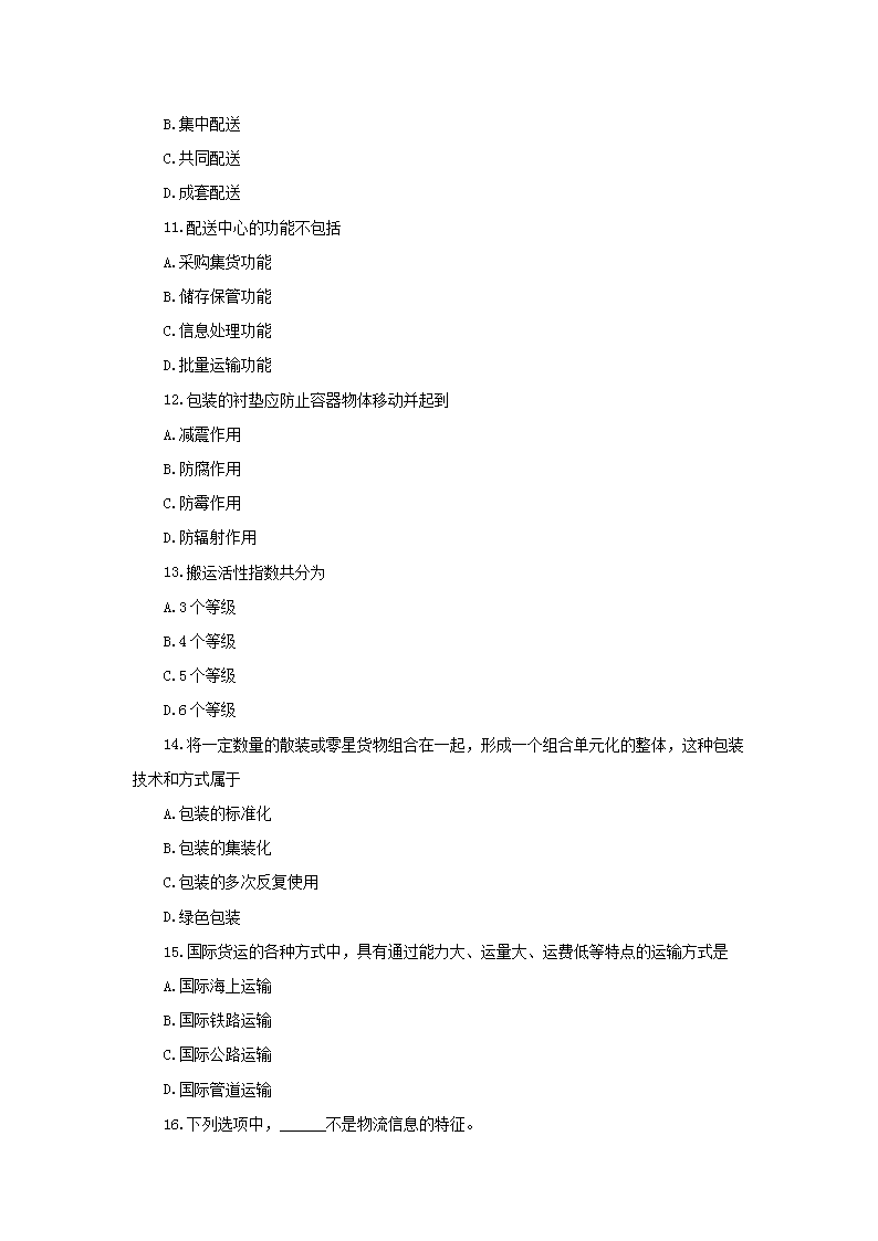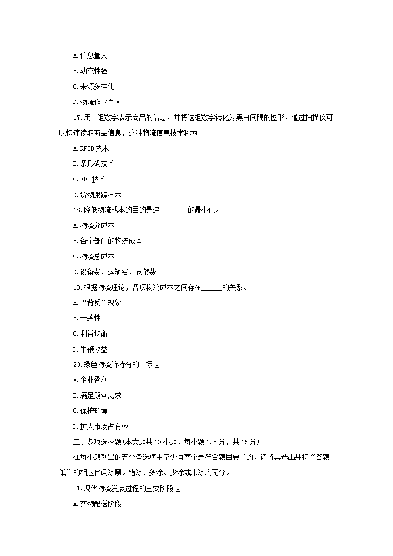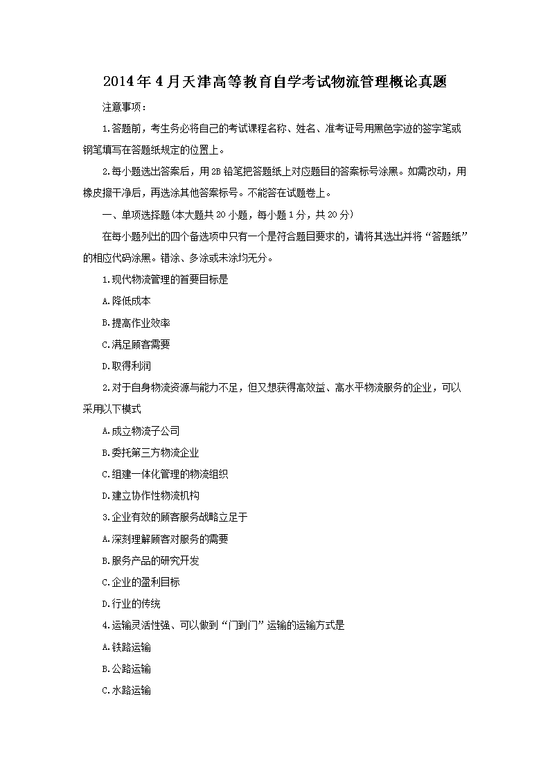 2014年4月天津高等教育自学考试物流管理概论真题(Word版)06-01
