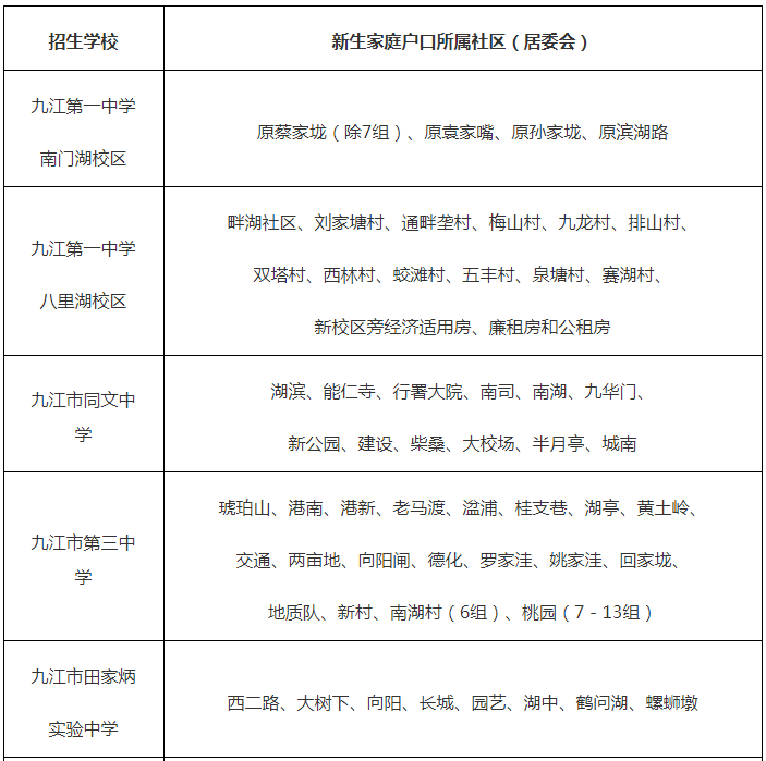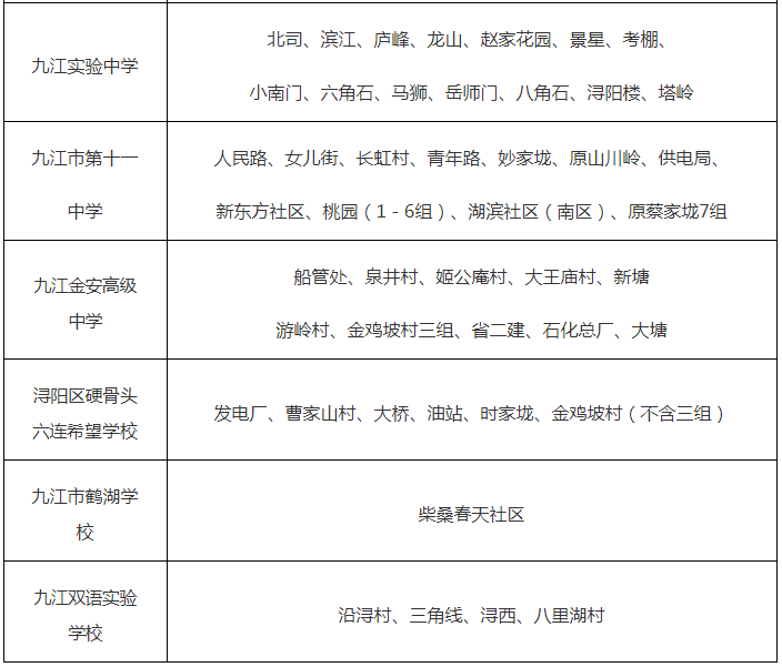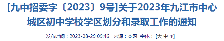 2023年江西九江市中心城区初中学校学区划分和录取工作的通知08-30