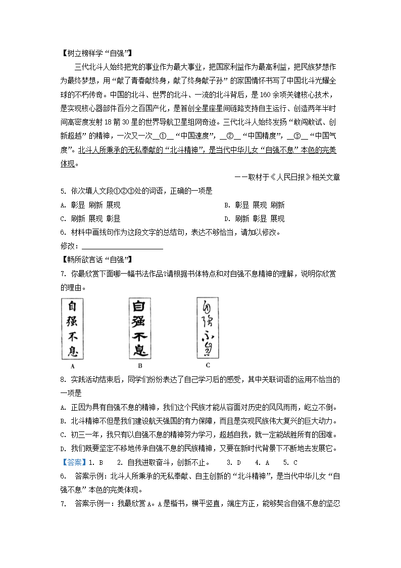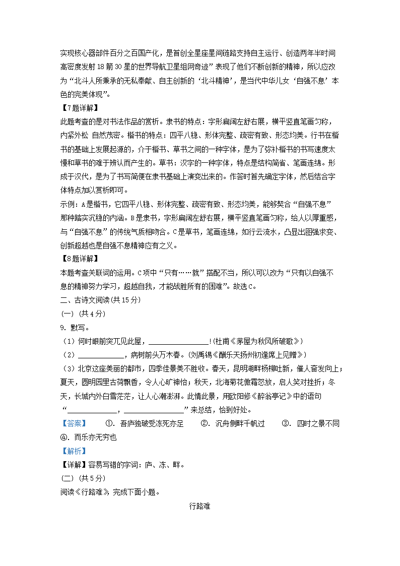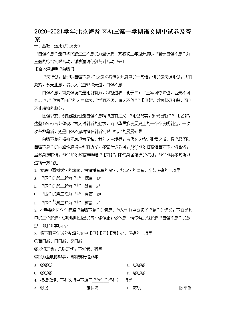 2020-2021学年北京海淀区初三第一学期语文期中试卷及答案(Word版)07-15