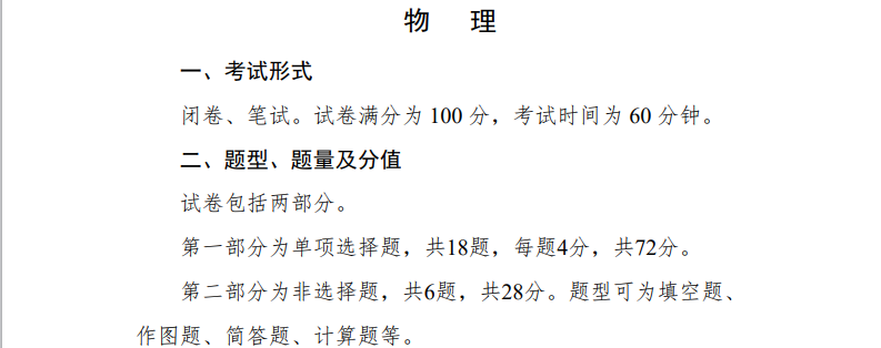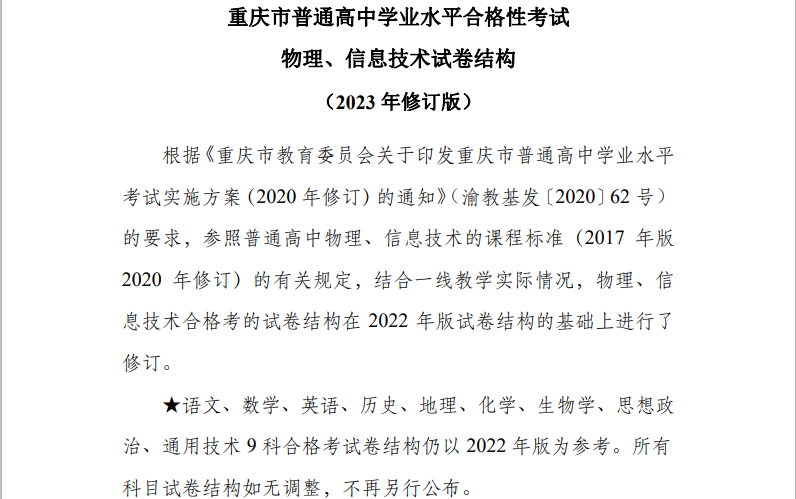 重庆市普通高中学业水平合格性考试物理、信息技术试卷结构(2023年修订版)09-08