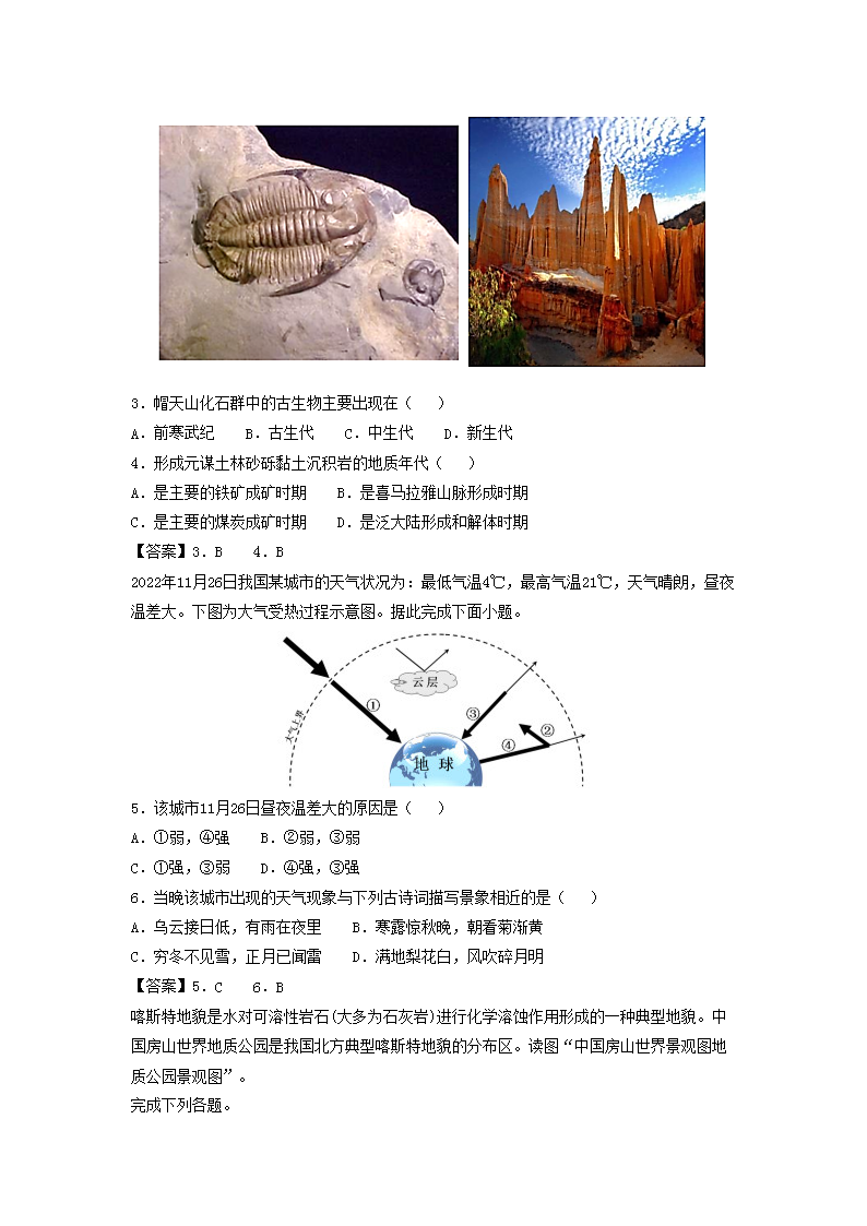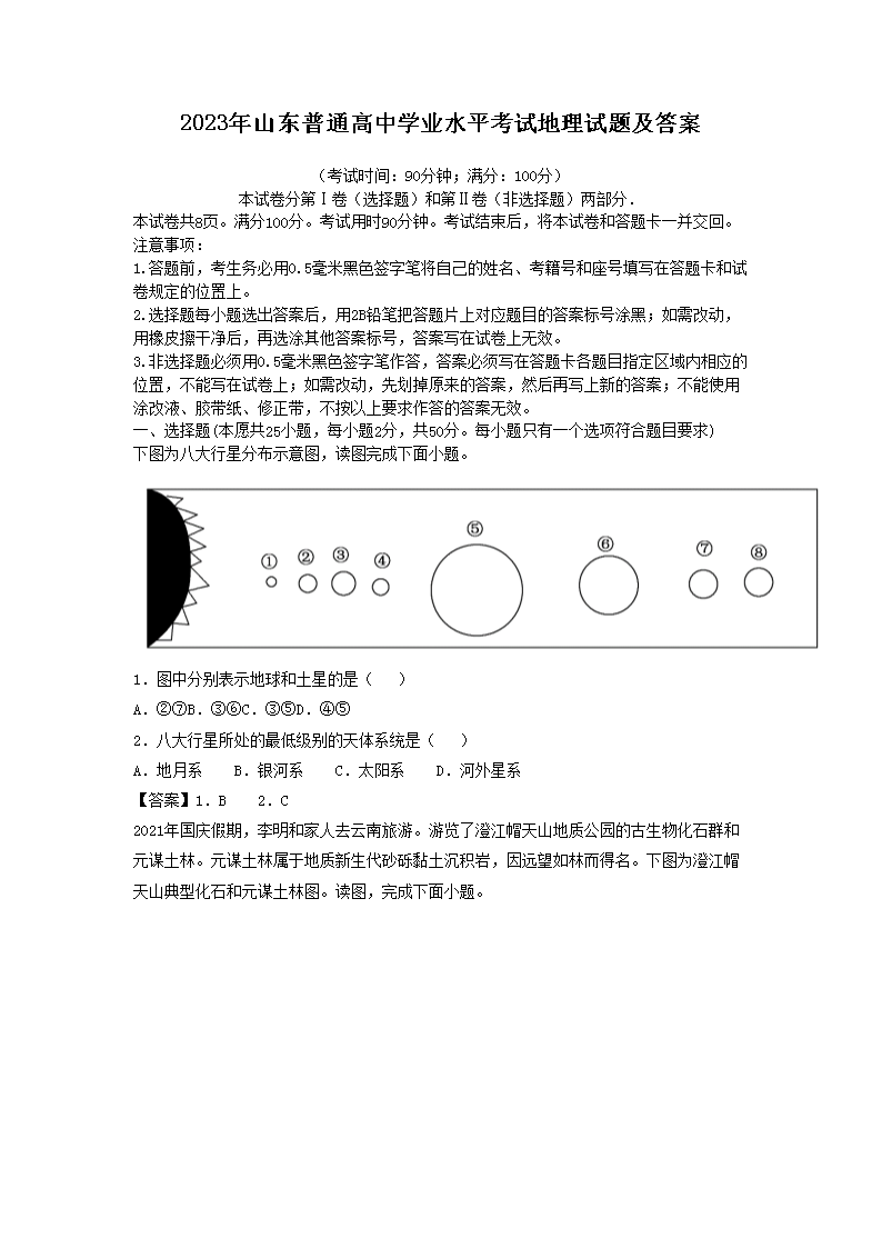 2023年山东普通高中学业水平考试地理试题及答案(Word版)08-01