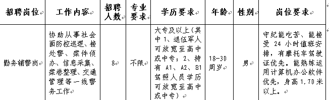 6.公安机关规定的其他条件(具体见招聘岗位情况及要求)。