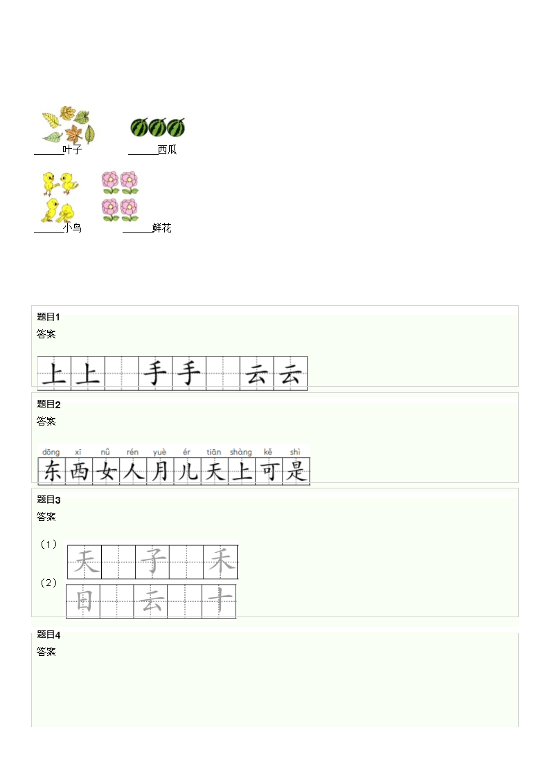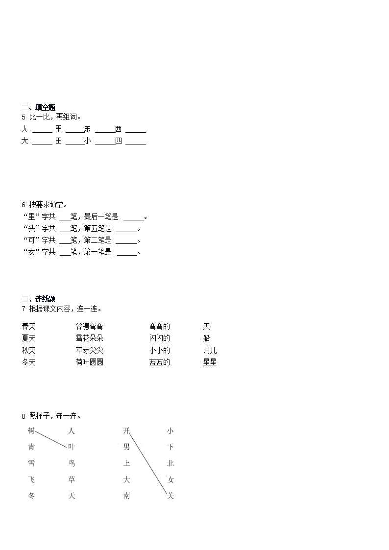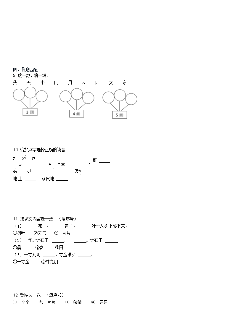 2022年广东韶关新丰县一年级上学期四单元语文试卷及答案(Word版)08-11