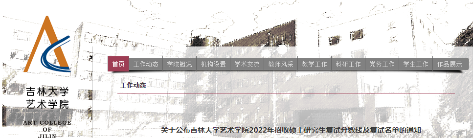 吉林大学艺术学院2022年考研复试分数线(已公布)08-28