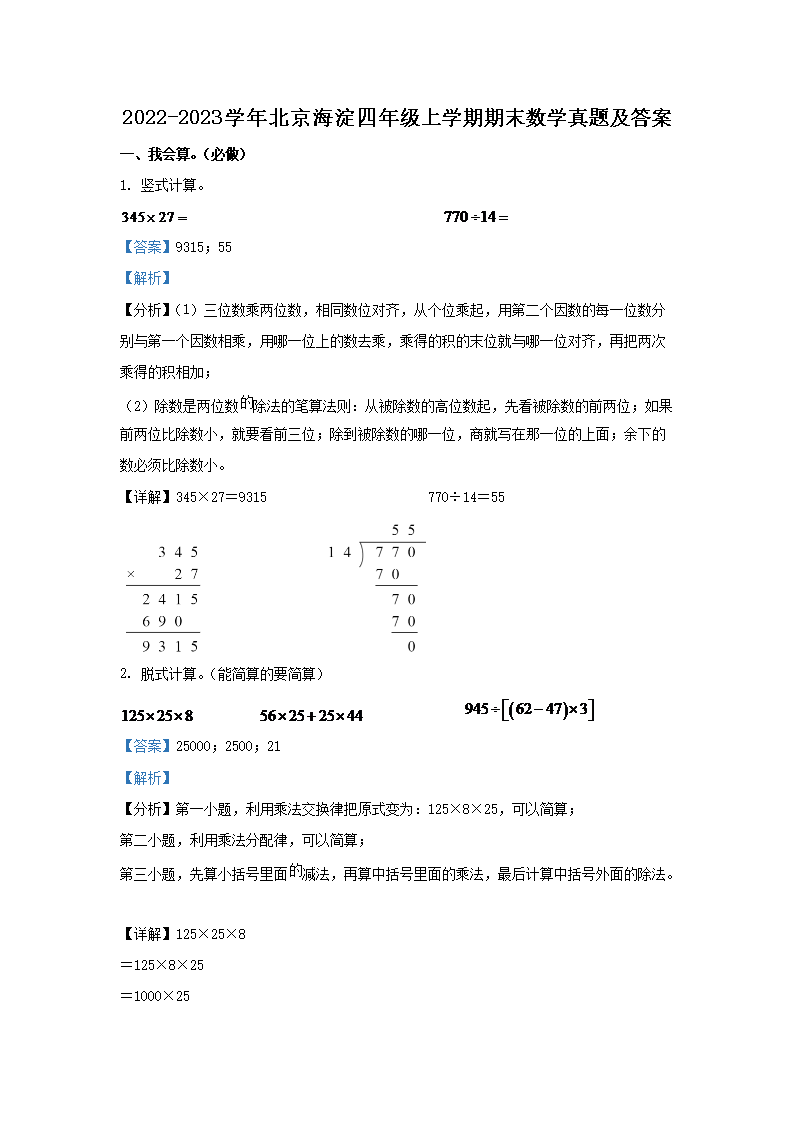 【文档预览】 文档大全网整理发布2022-2023学年北京海淀四年级上学期期末数学真题及答案(Word版),前五页预览如下: