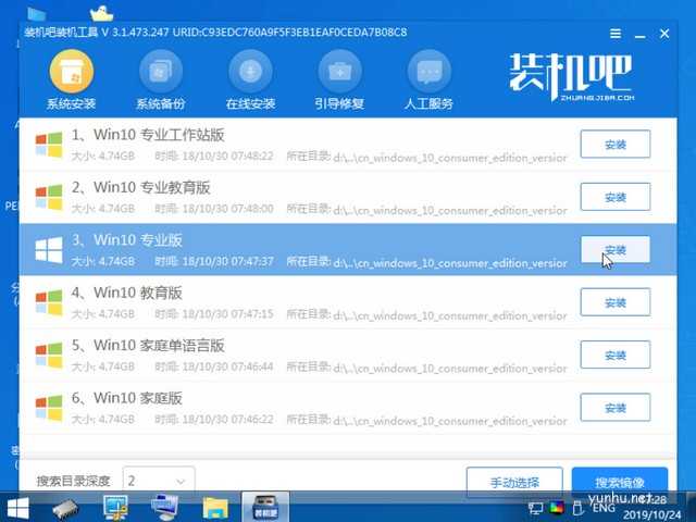 8、出现PE系统界面。弹出文档大全网装机工具,选择win10专业版,点击安装。当然,选择教育版,家庭版也是可以的。