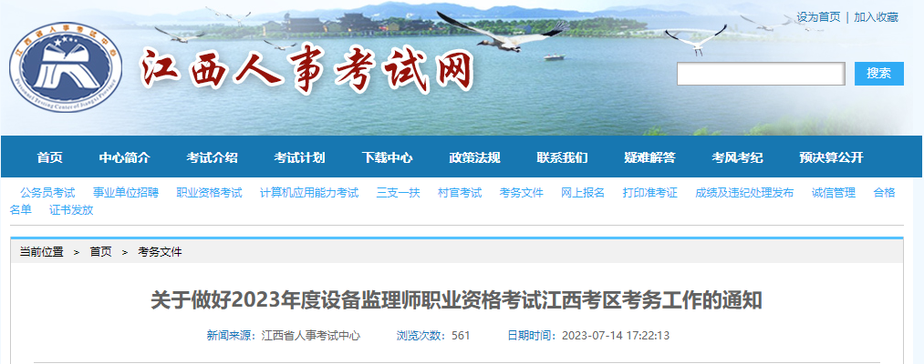 2023年江西设备监理师考试时间定于9月23日-24日举行!