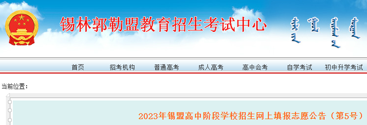 2023年内蒙古锡盟高中阶段学校招生网上填报志愿公告(第5号)07-22