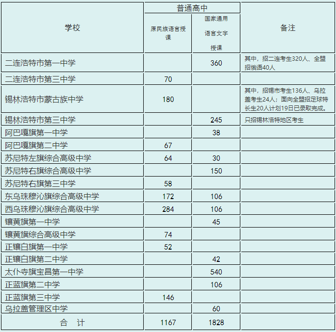 2023年锡盟普通高中第二批次录取学校招生计划表