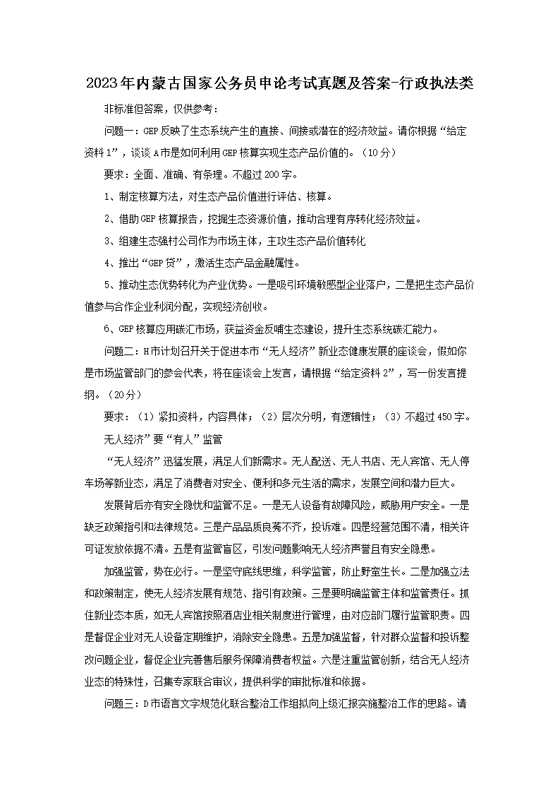 2023年内蒙古国家公务员申论考试真题及答案-行政执法类(Word版)10-18