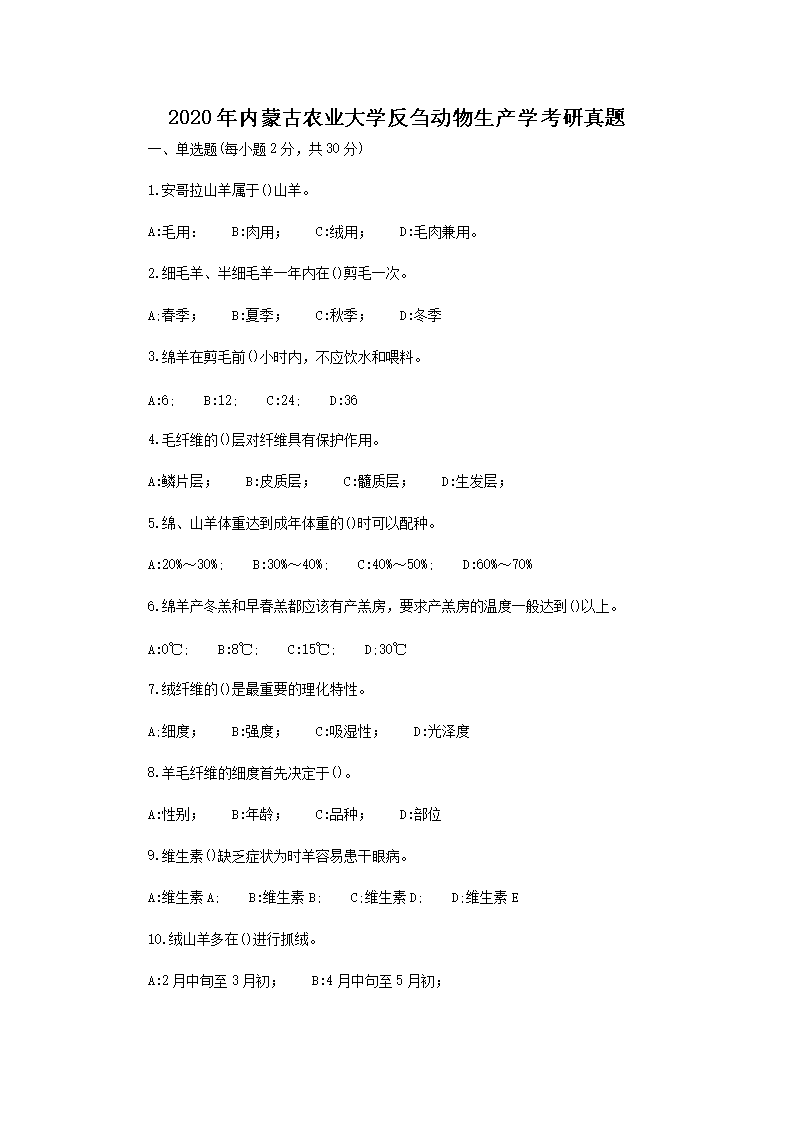 2020年内蒙古农业大学反刍动物生产学考研真题(Word版)07-25
