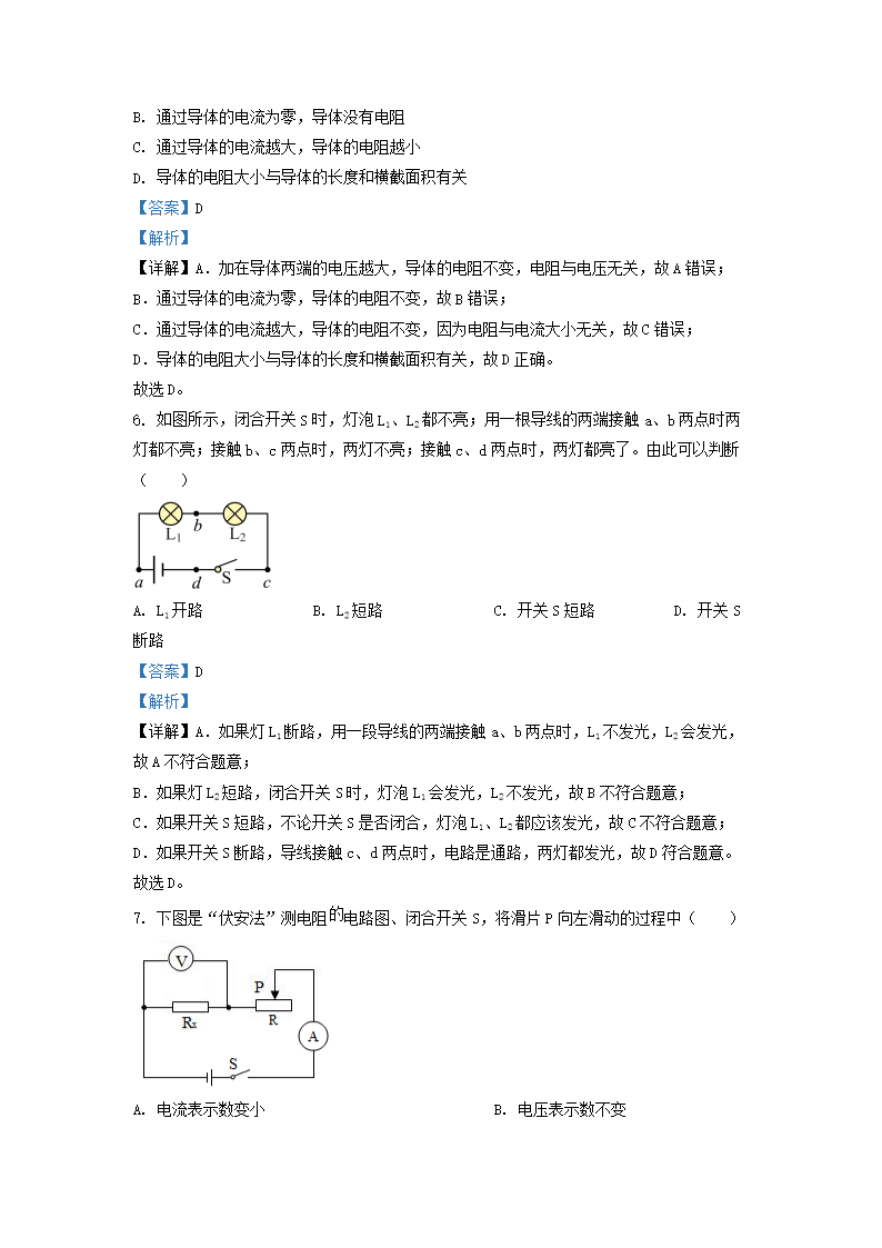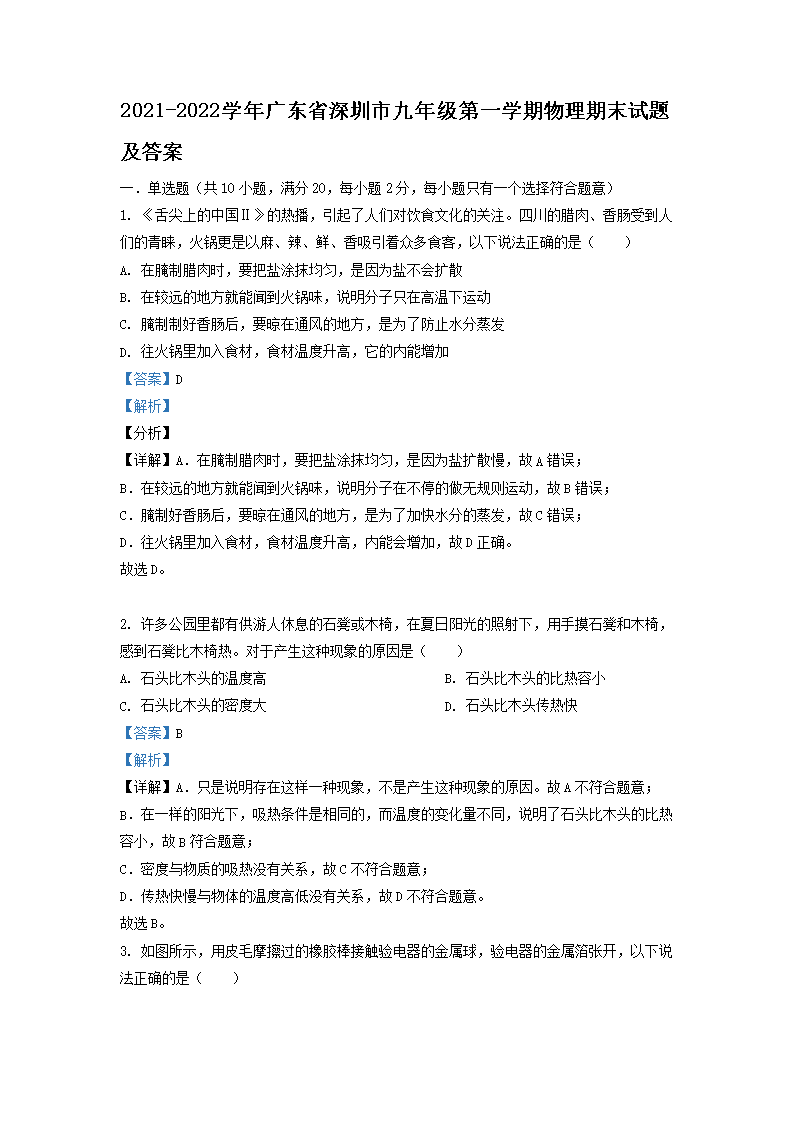 2021-2022学年广东省深圳市九年级第一学期物理期末试题及答案(Word版)08-25