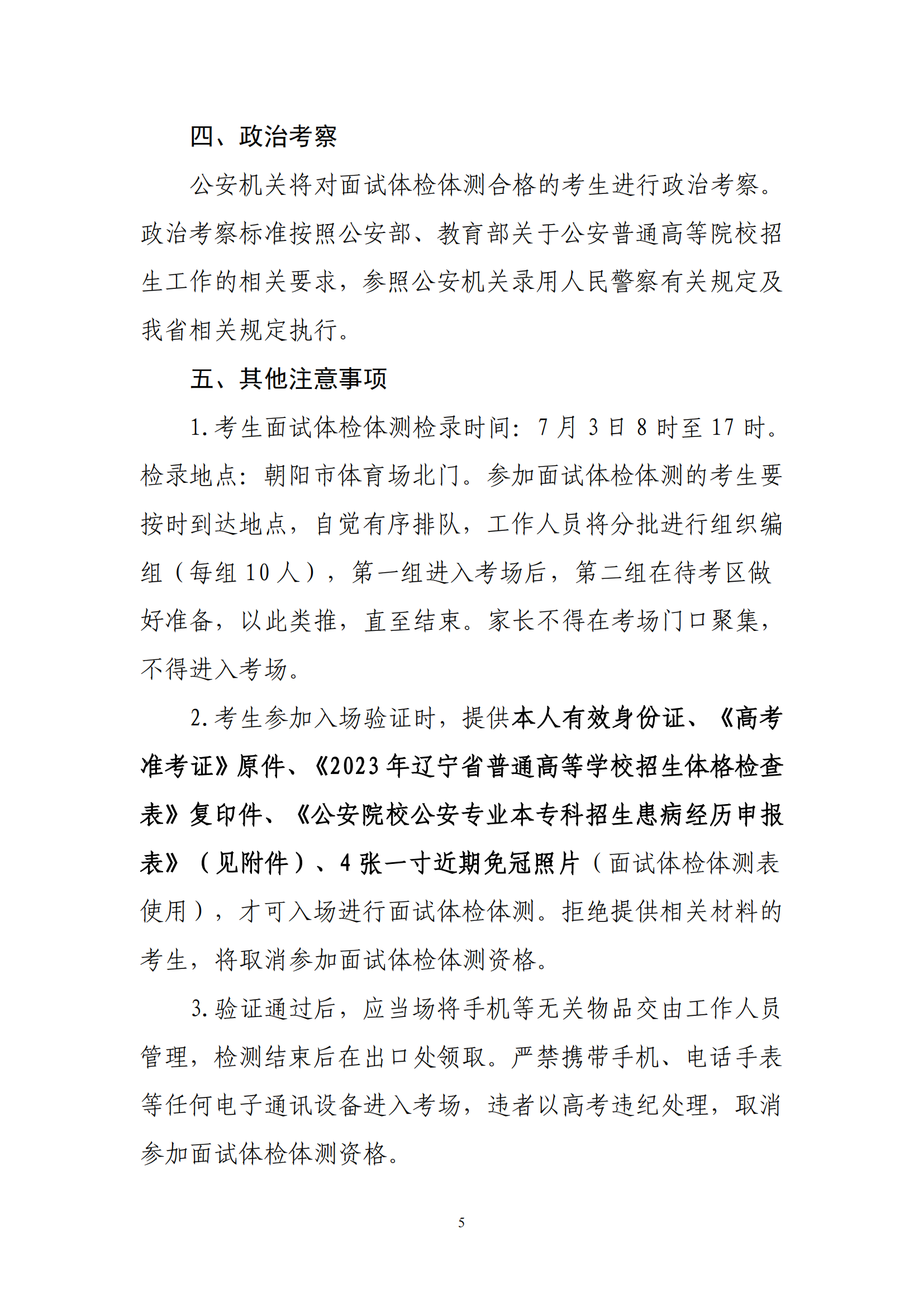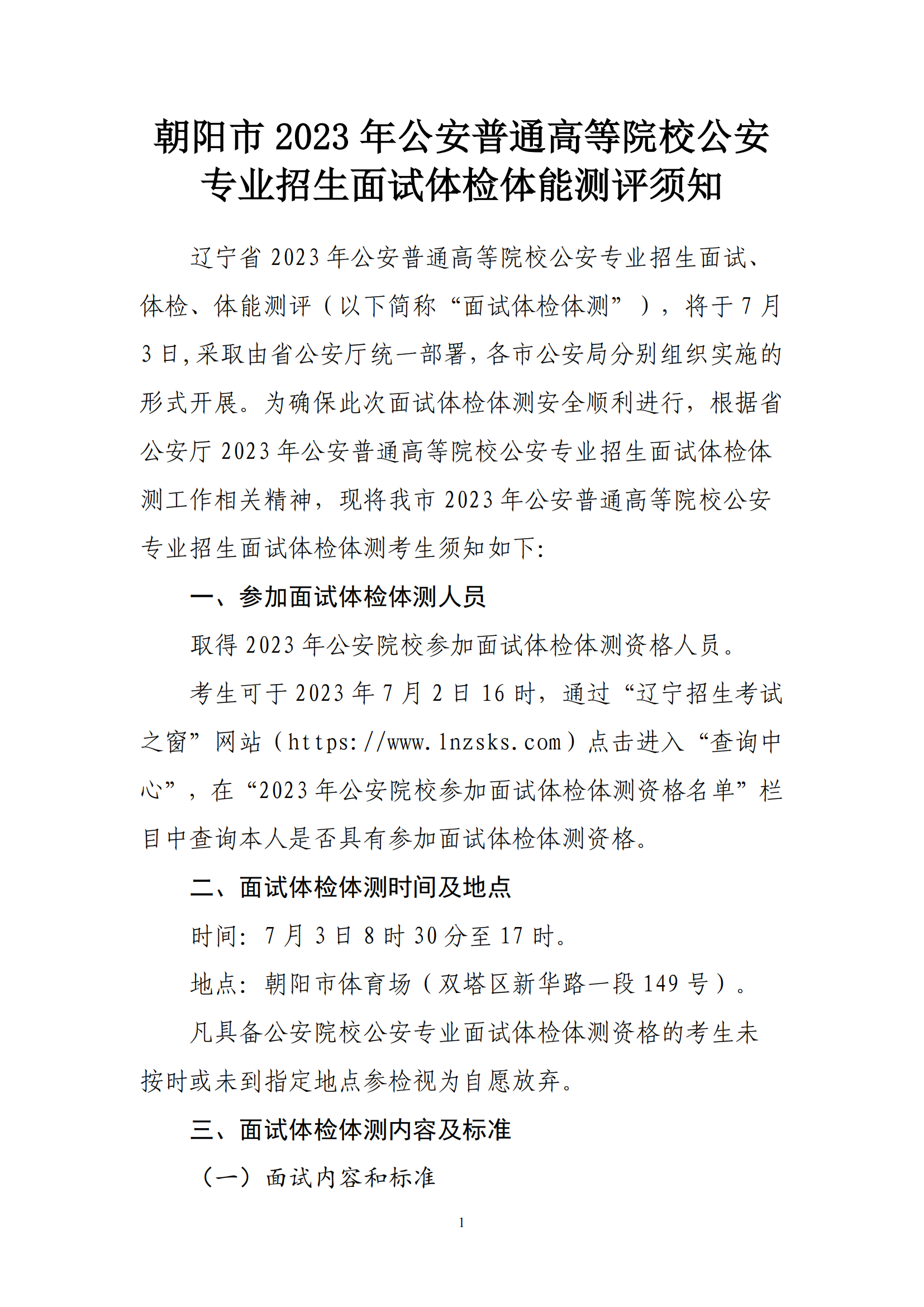 辽宁朝阳2023年公安普通高等院校公安专业招生面试体检体能测评须知06-29
