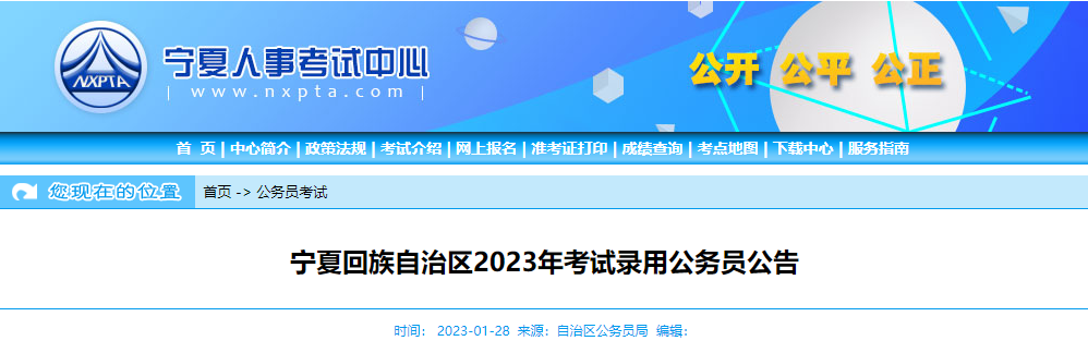 原文标题:宁夏回族自治区2023年考试录用公务员公告