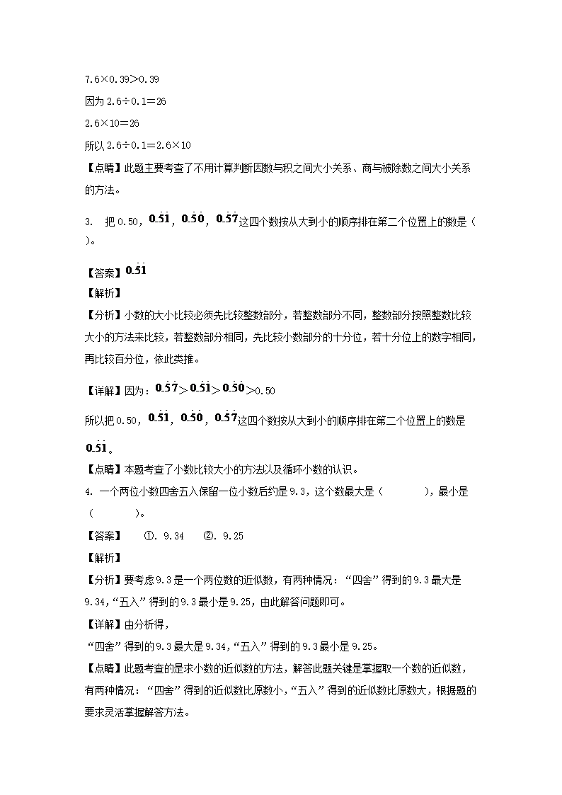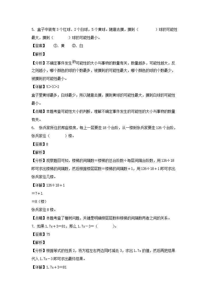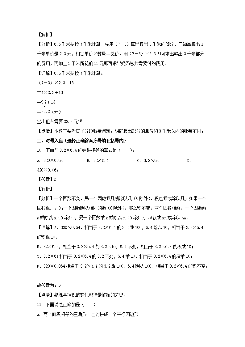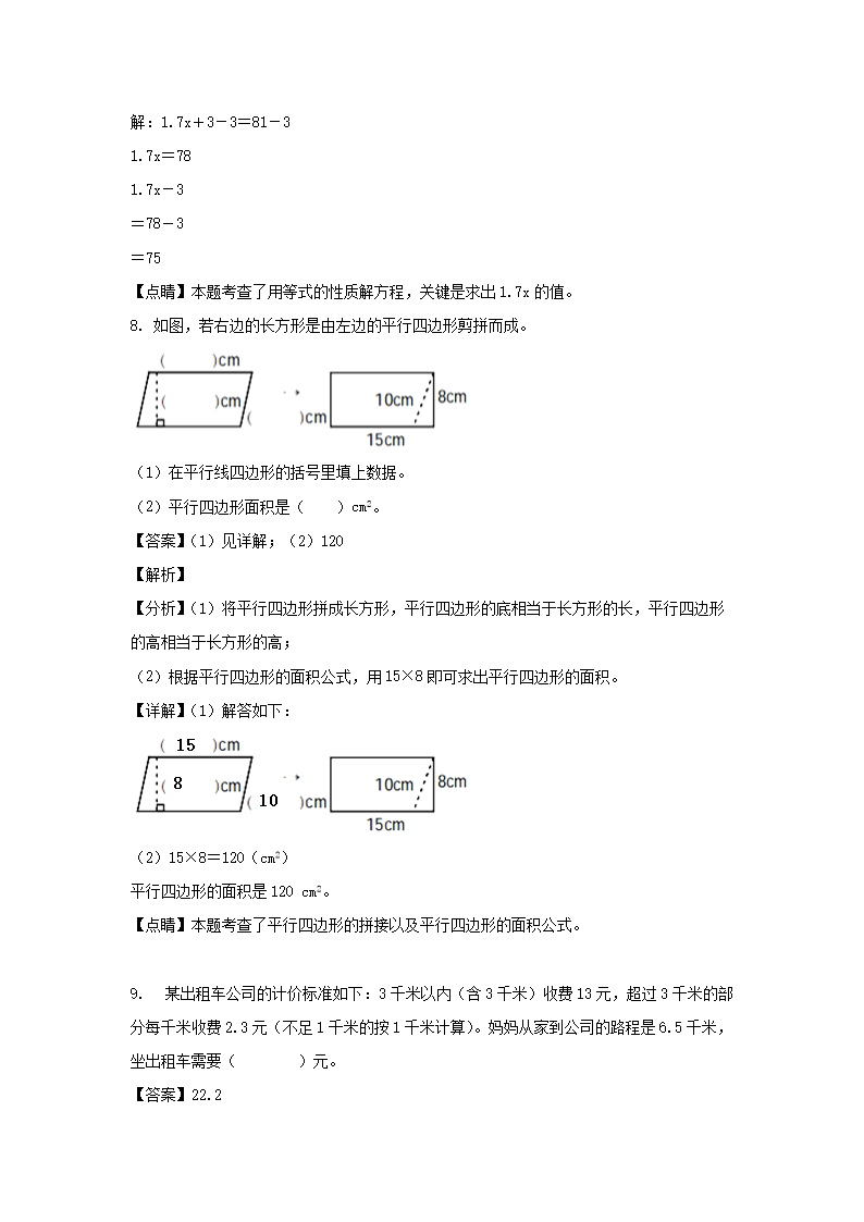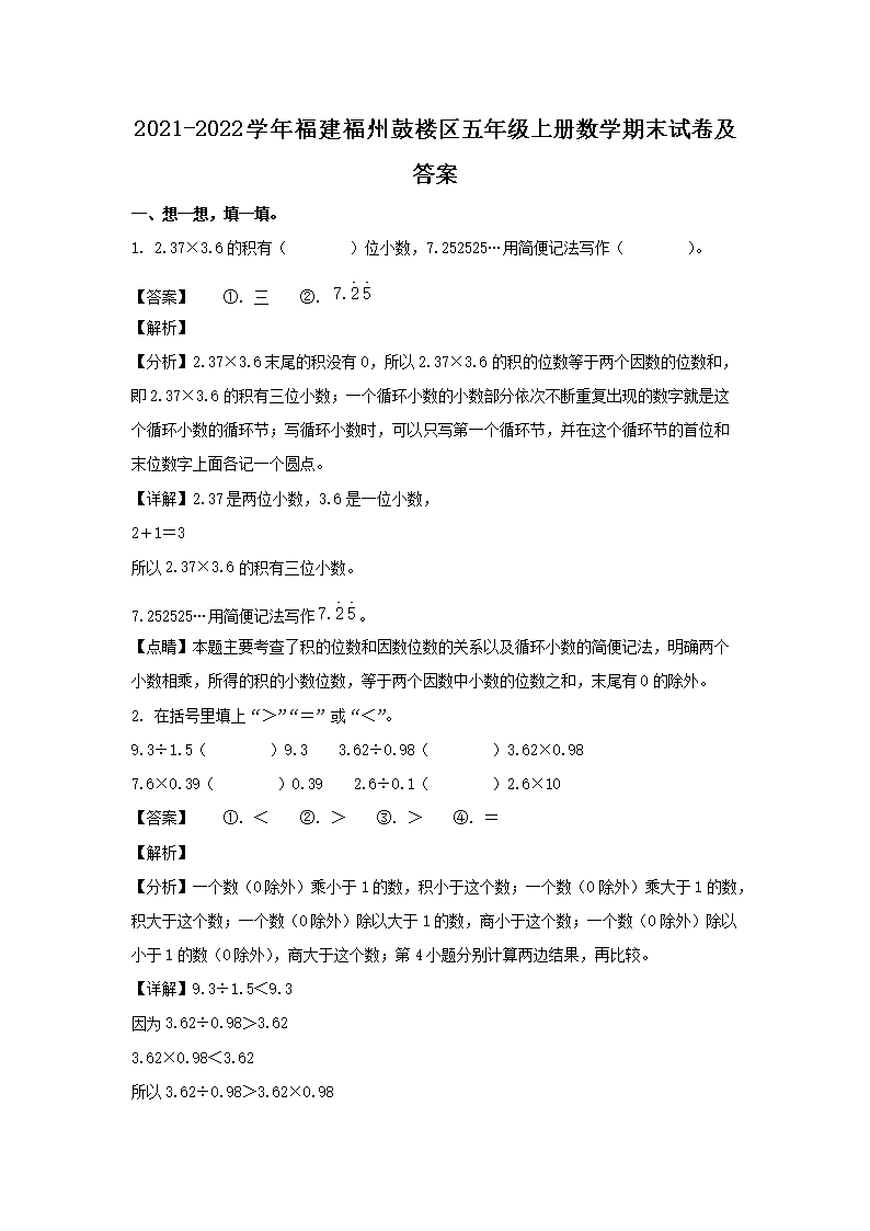 2021-2022学年福建福州鼓楼区五年级上册数学期末试卷及答案(Word版)08-26