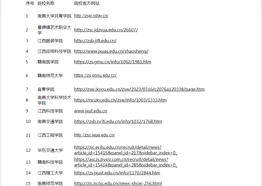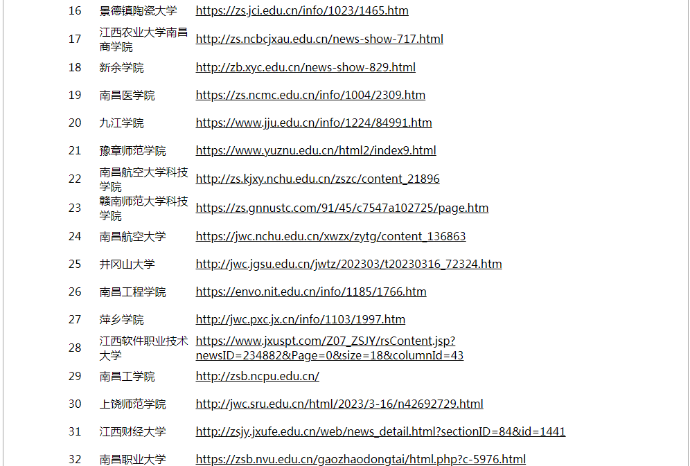江西省2023年专升本招生院校名单已公布03-18