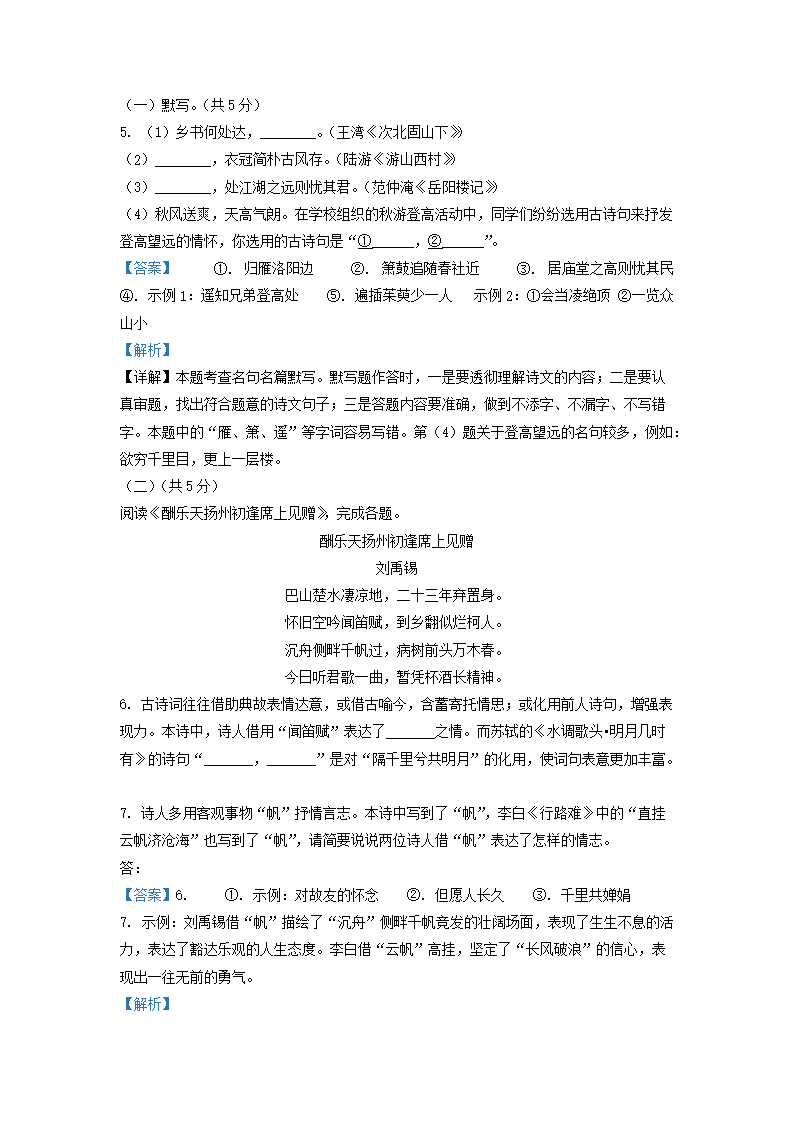 2021-2022学年北京海淀区初三第一学期语文期中试卷及答案(Word版)07-06