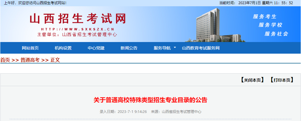 关于2023年山西普通高校特殊类型招生专业目录的公告07-01