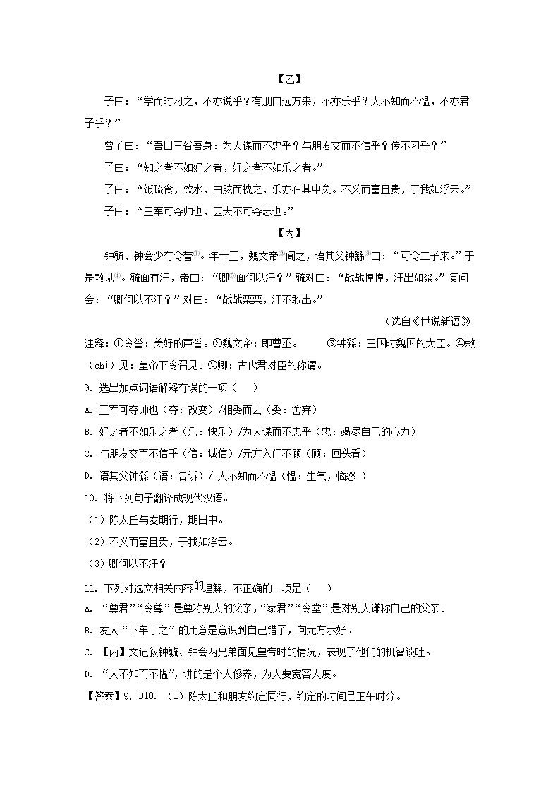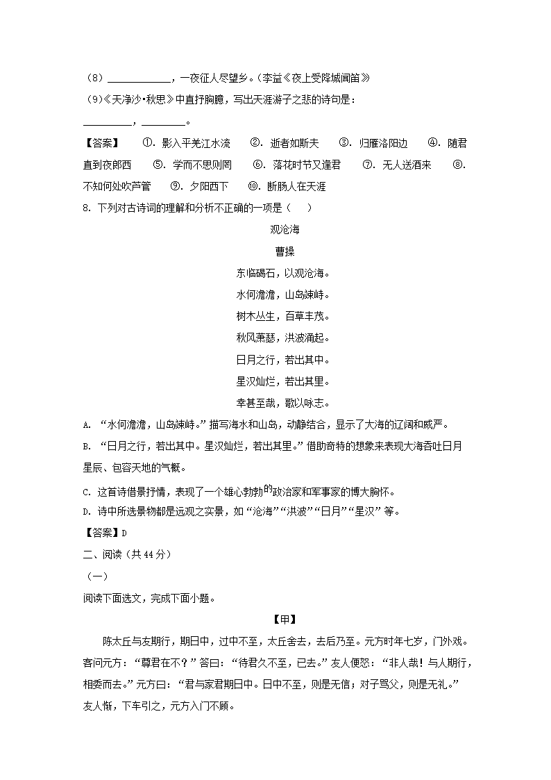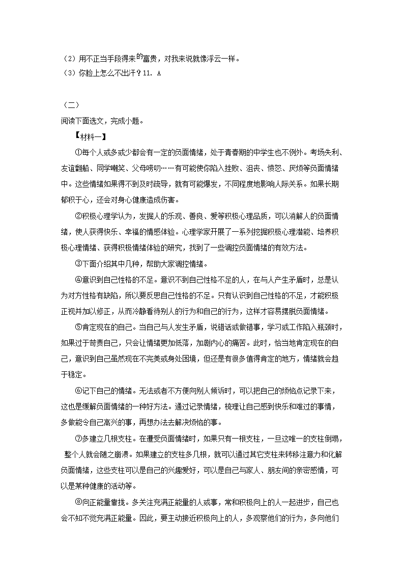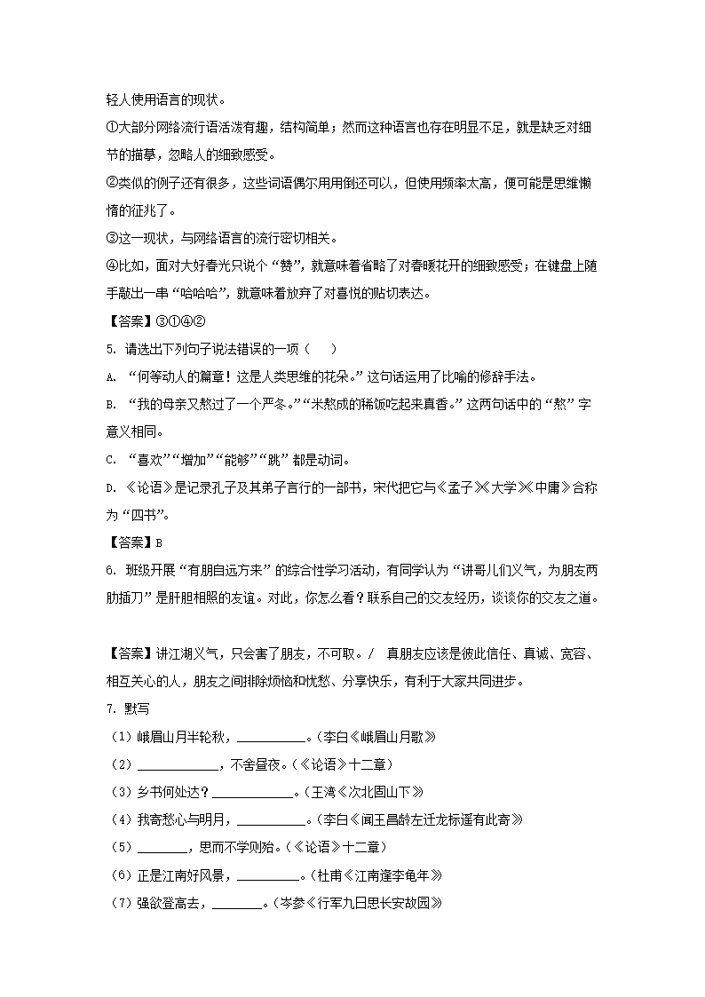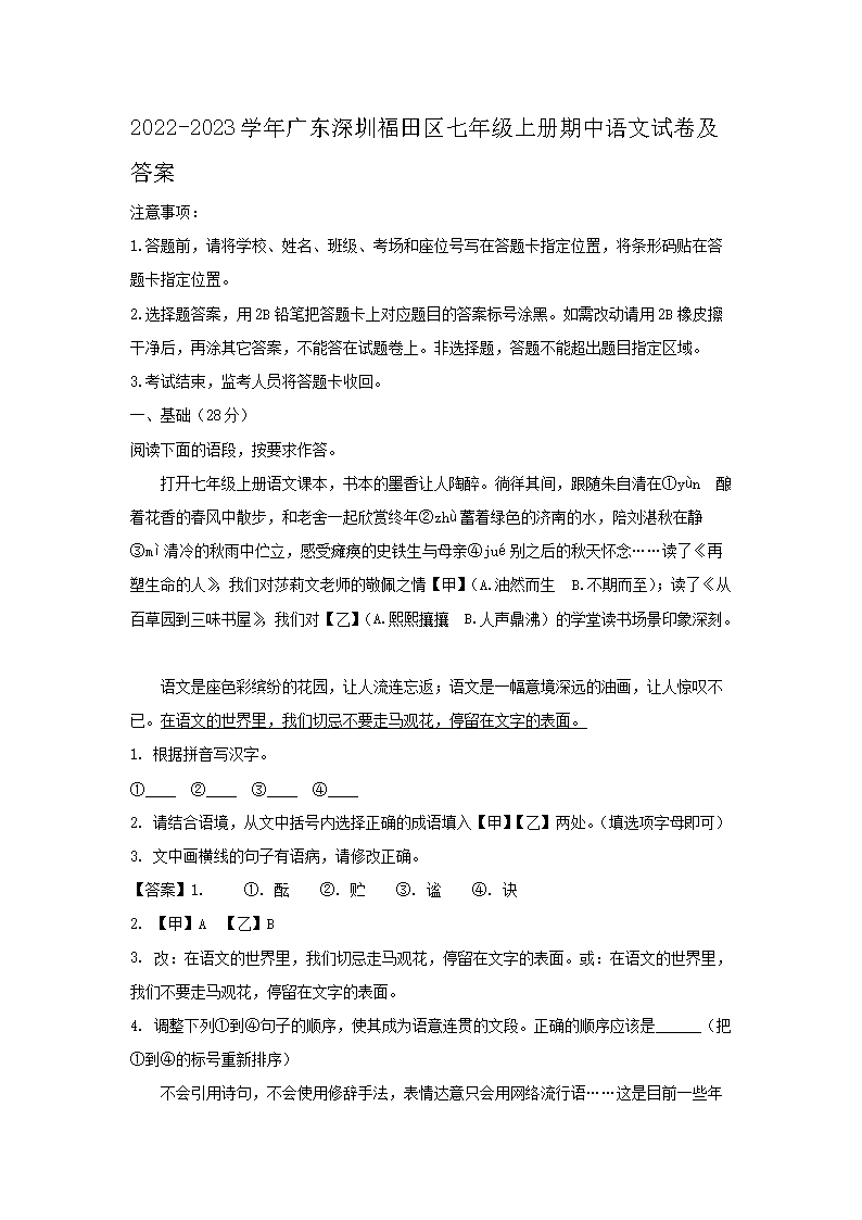 2022-2023学年广东深圳福田区七年级上册期中语文试卷及答案(Word版)09-27