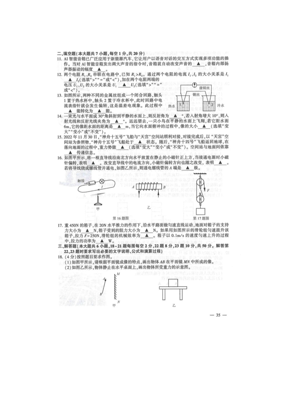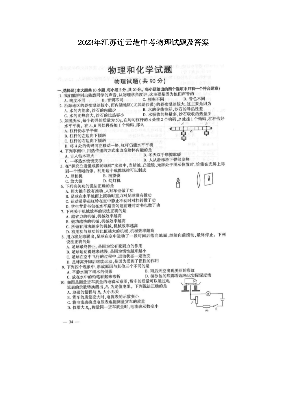 2023年江苏连云港中考物理试题及答案(图片版)06-17