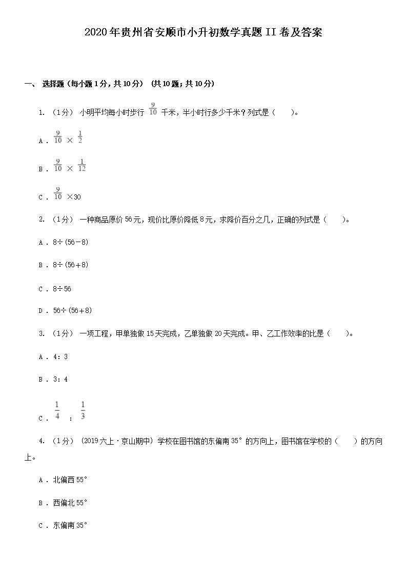 2020年贵州省安顺市小升初数学真题II卷及答案(Word版)08-01