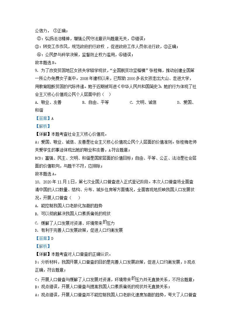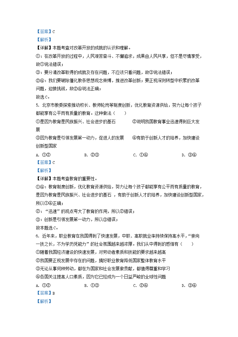 2021-2022学年北京通州区初三第一学期道德与法治期末试卷及答案(Word版)07-11
