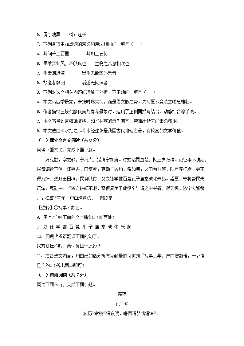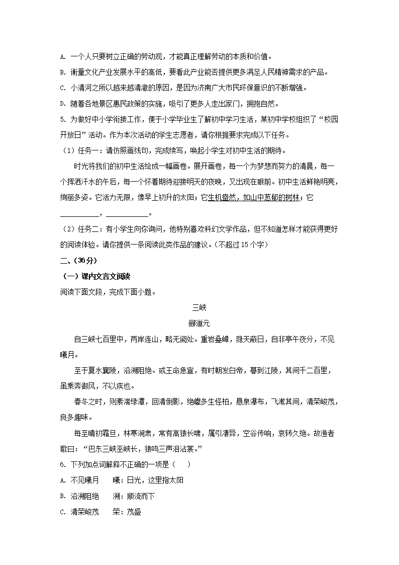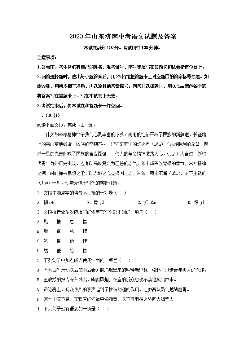 2023年山东济南中考语文试题及答案(Word版)08-10
