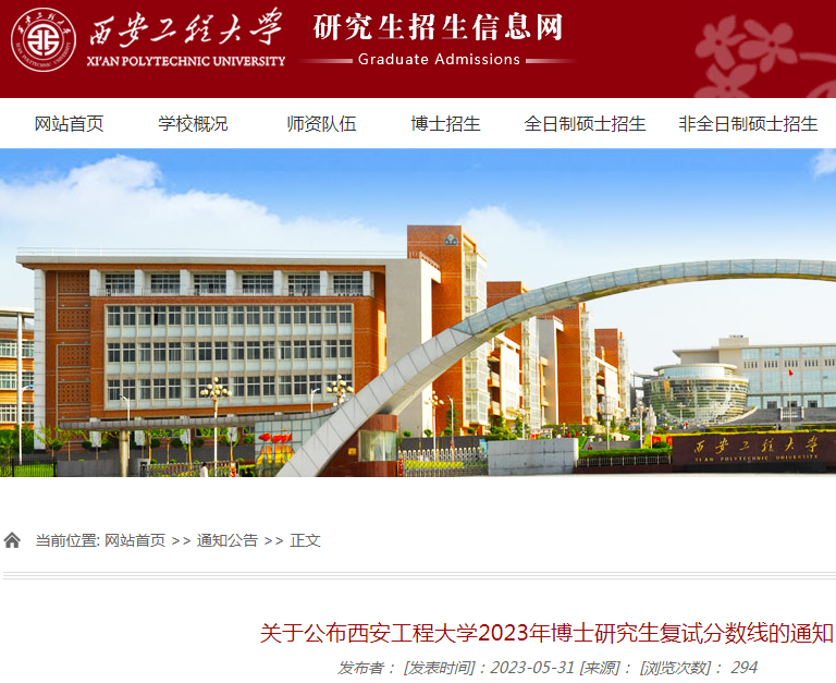 陕西:西安工程大学公布2023年博士研究生复试分数线的通知06-02
